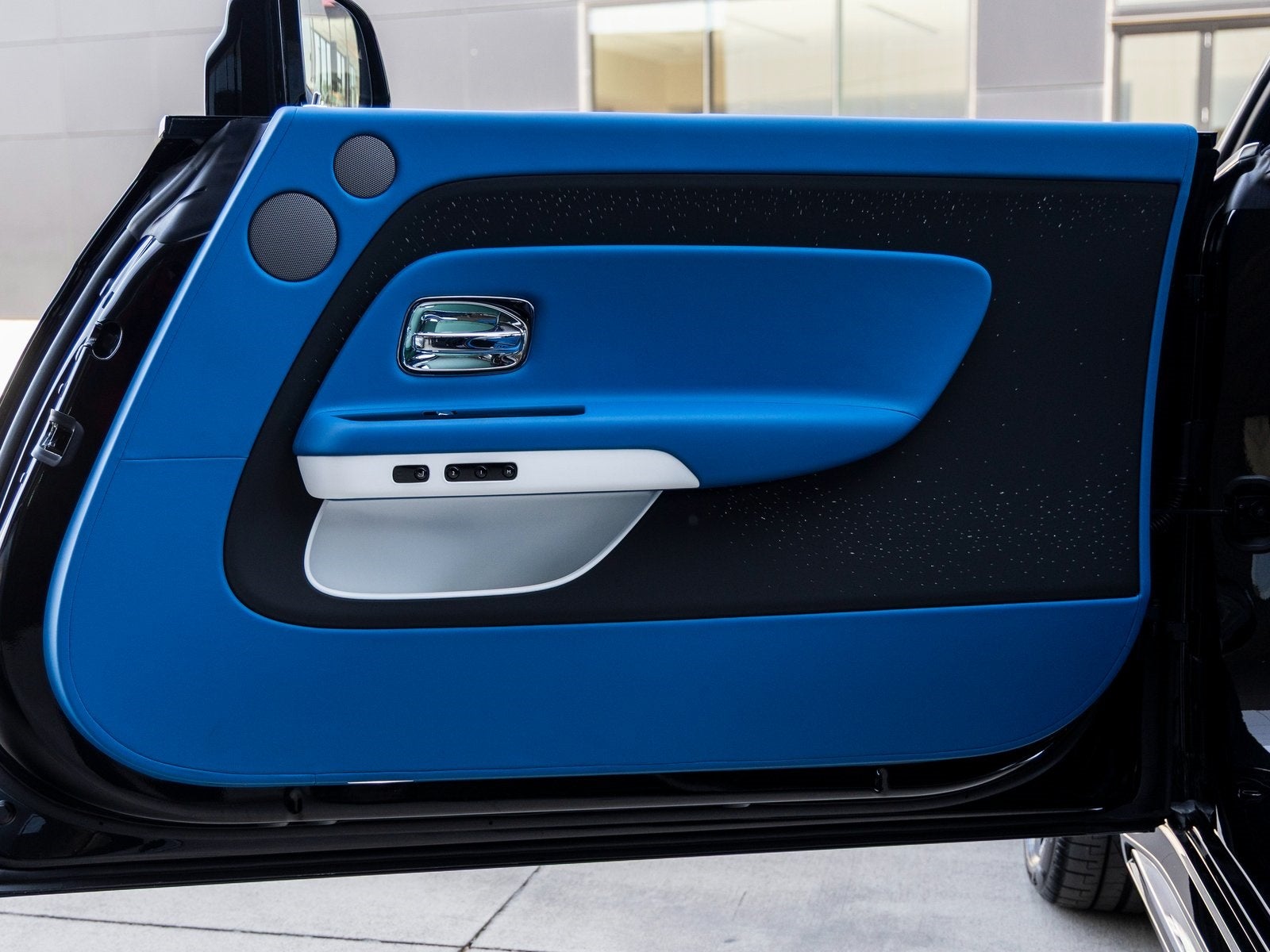 Step inside and the Muscari Blue interior with Black and Arctic White accents greets you, exuding an air of bespoke luxury that only Rolls-Royce can deliver. Highlights include the Shooting Star Headliner and Starlight Doors, immersing occupants in a celestial ambiance. The cabin is further elevated by details like the Open Pore Blackwood trim, Ventilated Massage Seats, and Lambswool Footmats, showcasing a commitment to the highest level of craftsmanship and comfort.