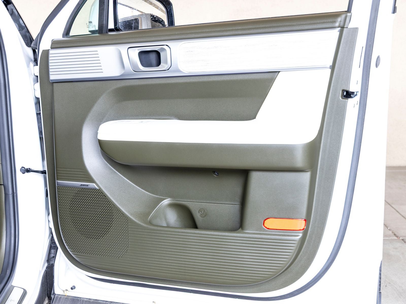 - Radio: AM/FM/HD Bose Premium Audio System -inc: 12 speakers including subwoofer, external amplifier, 12.3" wide touchscreen, Apple CarPlay and Android Auto, Bluetooth® hands-free w/wireless audio streaming, dynamic voice recognition, USB connectivity, SiriusXM, Blue Link+ connected car system, navigation system including traffic flow w/incident data via HD Radio (HERE) and rear seat quiet mode
