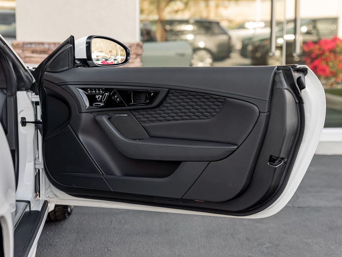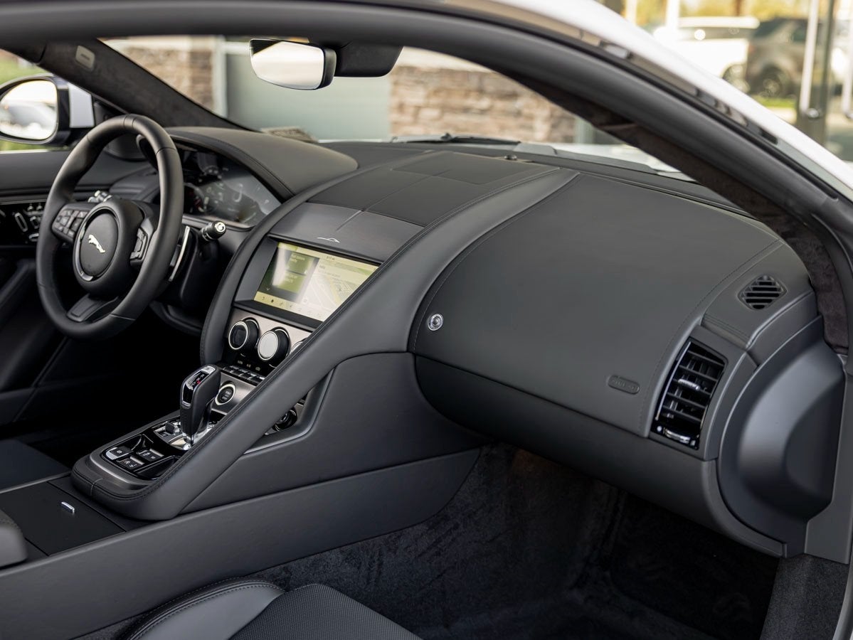 The sleek and aerodynamic design of this F-TYPE is enhanced by its elegant Fuji White paintwork, accentuating its muscular curves and bold stance. Its aggressive front grille, signature LED headlights, and sculpted lines reflect Jaguars commitment to performance-driven aesthetics, making this coupe a true head-turner.