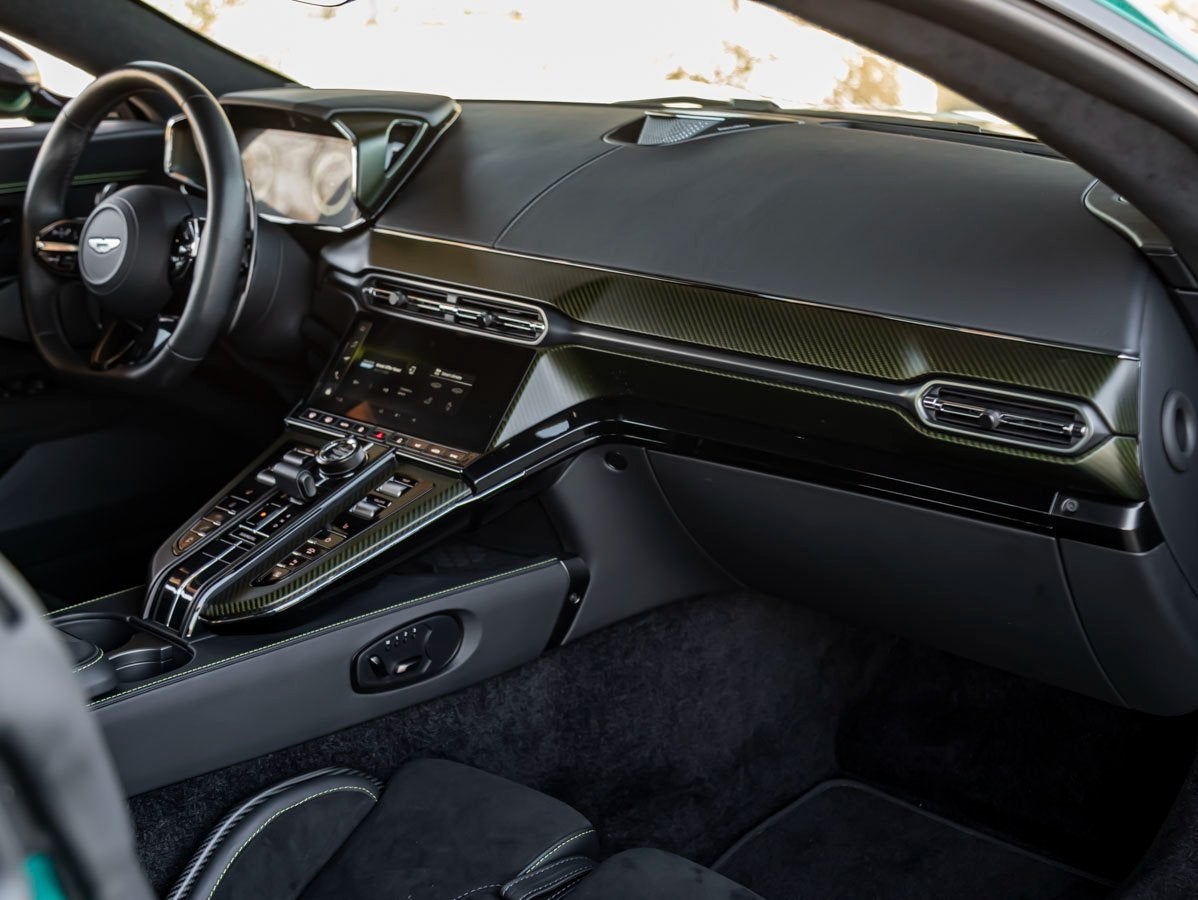 The 2+2 seating arrangement enhances versatility without compromising the intimate grand touring experience. Intricate Seat Accent and Parcel Shelving Quilting showcases the artisanal craftsmanship synonymous with Aston Martin. A Full-Length Piano Black Fascia Trim and Black Hardware Pack create a sleek, modern aesthetic, complemented by a Color-Keyed Steering Wheel Trim for a cohesive and driver-focused environment. The stunning Glass Key further reflects the exclusivity and design excellence of this remarkable coupe.