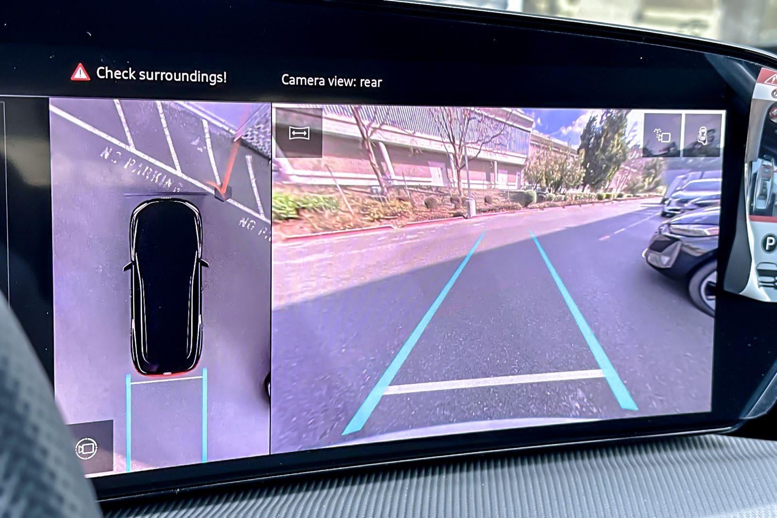 - The vehicle is equipped with a camera that displays an image of the area behind the vehicle on an interior display.
