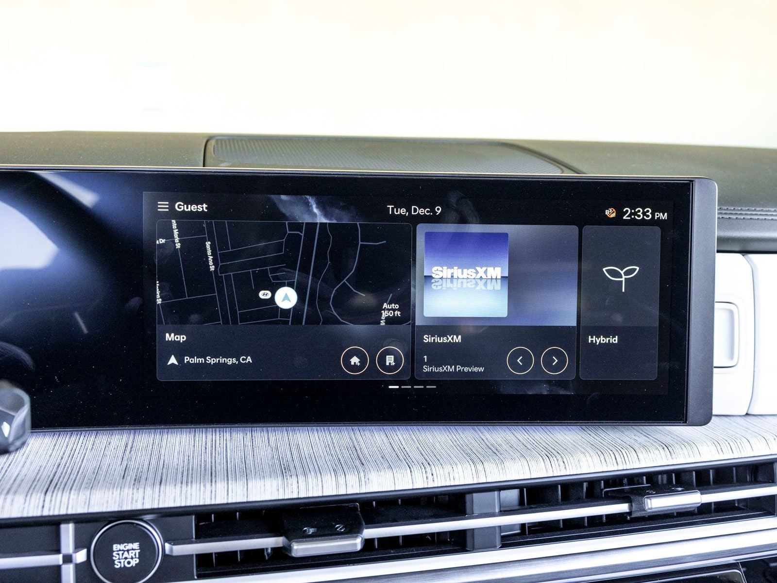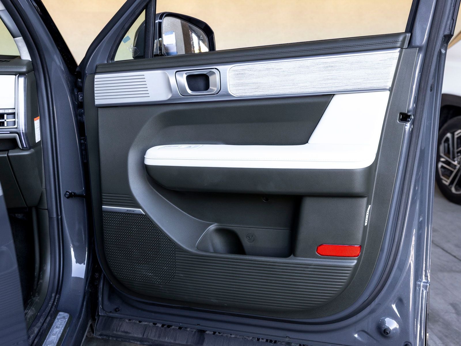 • Radio: AM/FM/HD Bose Premium Audio System -inc: 12 speakers including subwoofer, external amplifier, 12.3" wide touchscreen, Apple CarPlay and Android Auto, Bluetooth® hands-free w/wireless audio streaming, dynamic voice recognition, USB connectivity, SiriusXM, wifi hotspot, Blue Link connected car system, navigation system including traffic flow w/incident data via HD Radio (HERE), OTA updates (map only) and rear seat quiet mode