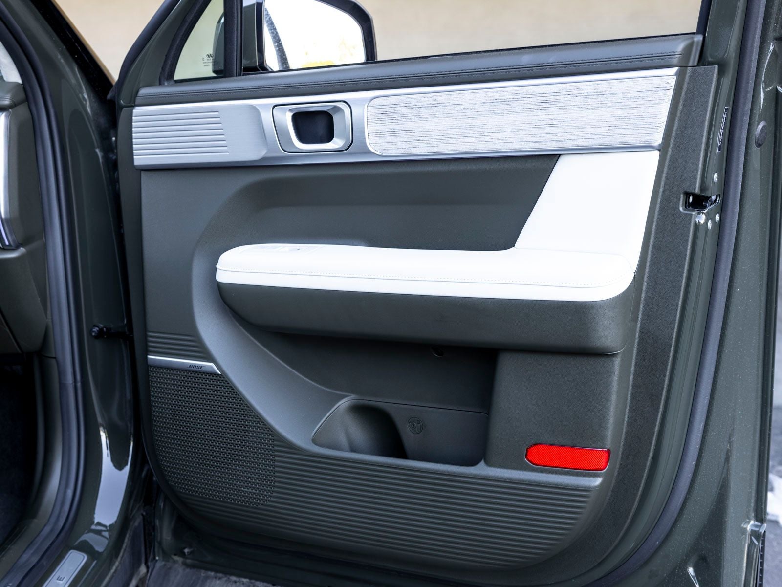 - Radio: AM/FM/HD Bose Premium Audio System -inc: 12 speakers including subwoofer, external amplifier, 12.3" wide touchscreen, Apple CarPlay and Android Auto, Bluetooth® hands-free w/wireless audio streaming, dynamic voice recognition, USB connectivity, SiriusXM, Blue Link+ connected car system, over-the-air updating capability, navigation system including traffic flow w/incident data via HD Radio (HERE) and rear seat quiet mode