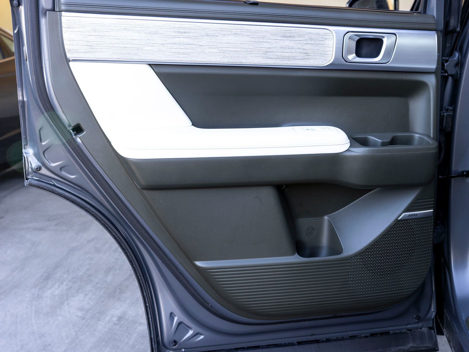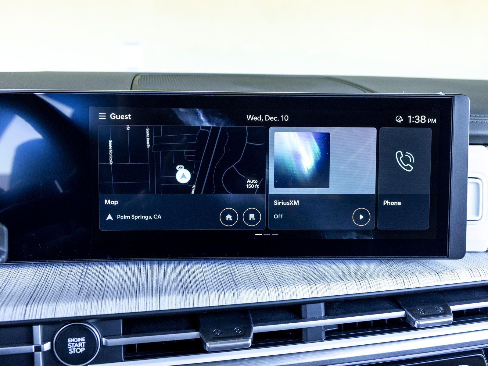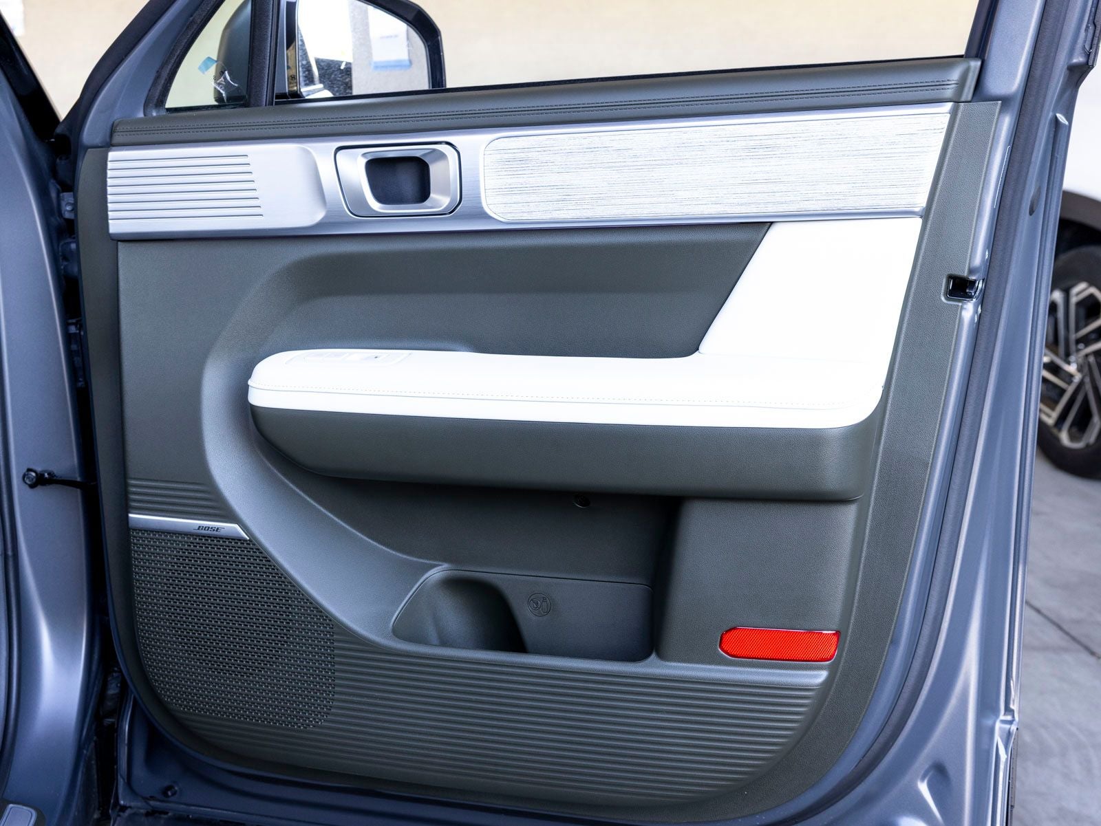 - Radio: AM/FM/HD Bose Premium Audio System -inc: 12 speakers including subwoofer, external amplifier, 12.3" wide touchscreen, Apple CarPlay and Android Auto, Bluetooth® hands-free w/wireless audio streaming, dynamic voice recognition, USB connectivity, SiriusXM, Blue Link+ connected car system, over-the-air updating capability, navigation system including traffic flow w/incident data via HD Radio (HERE) and rear seat quiet mode