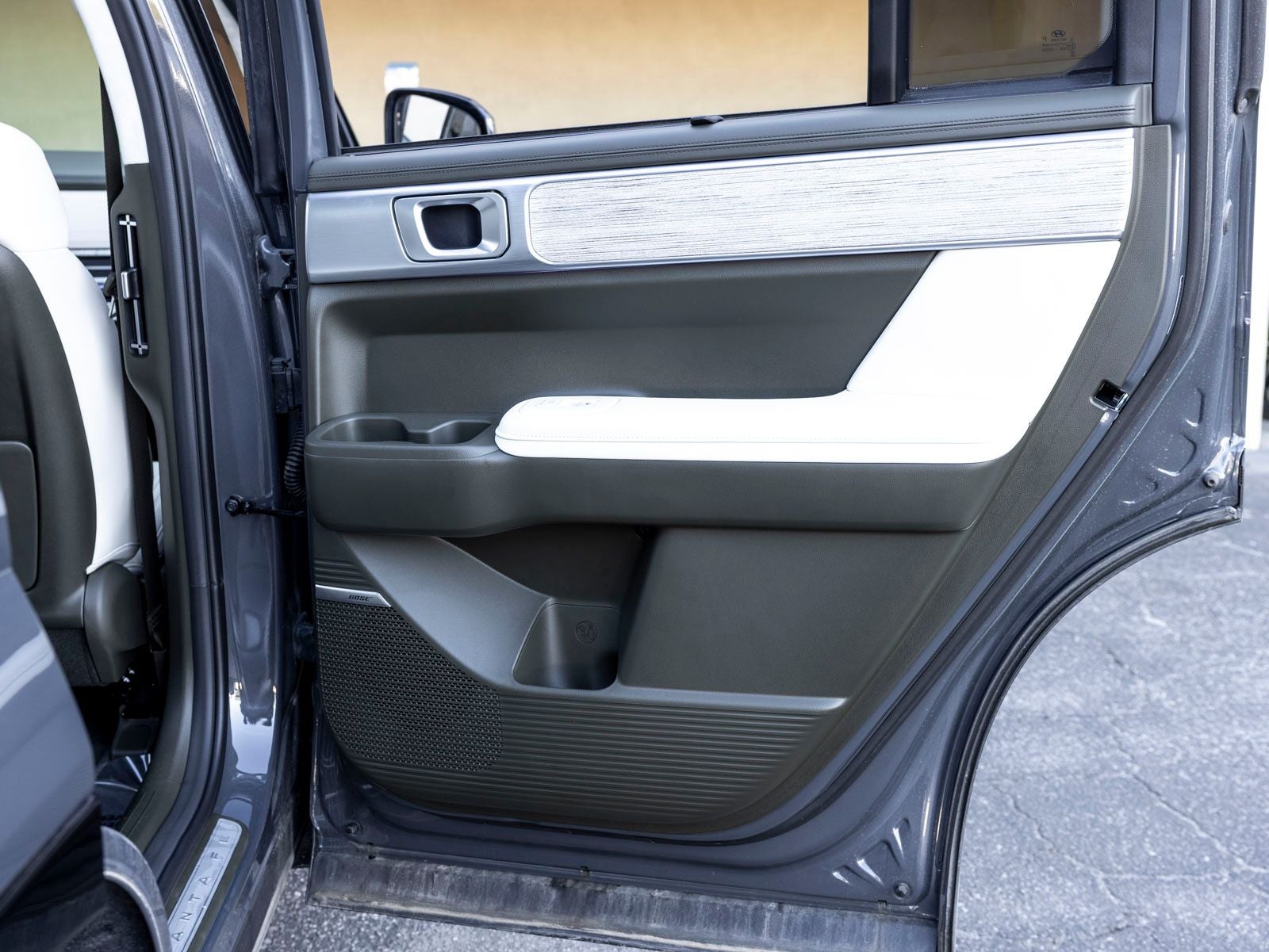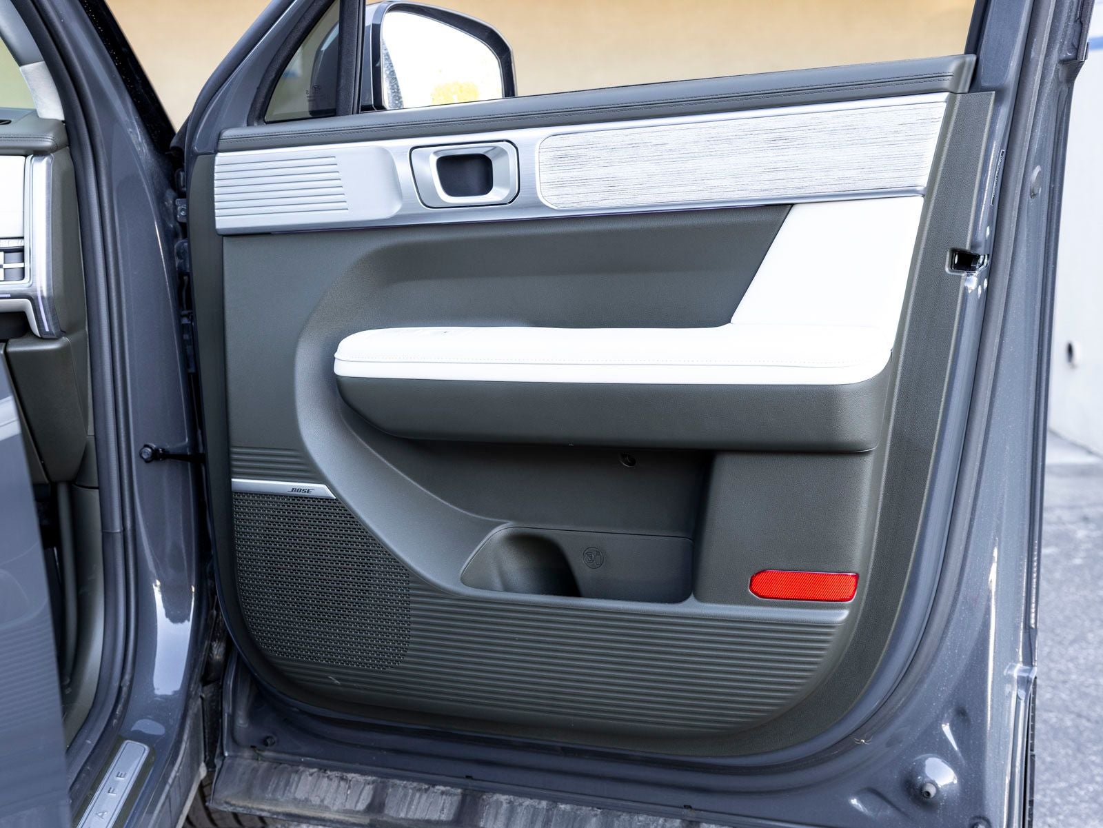 - Radio: AM/FM/HD Bose Premium Audio System -inc: 12 speakers including subwoofer, external amplifier, 12.3" wide touchscreen, Apple CarPlay and Android Auto, Bluetooth® hands-free w/wireless audio streaming, dynamic voice recognition, USB connectivity, SiriusXM, Blue Link+ connected car system, over-the-air updating capability, navigation system including traffic flow w/incident data via HD Radio (HERE) and rear seat quiet mode