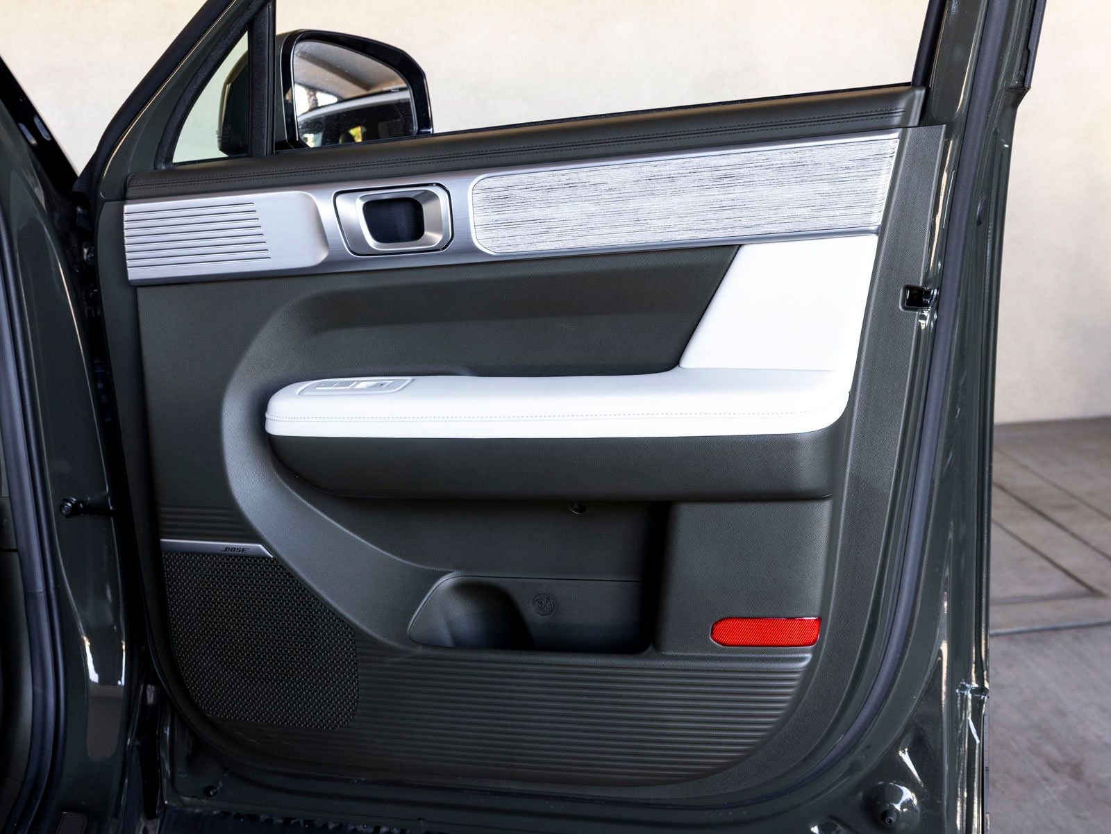 - Radio: AM/FM/HD Bose Premium Audio System -inc: 12 speakers including subwoofer, external amplifier, 12.3" wide touchscreen, Apple CarPlay and Android Auto, Bluetooth® hands-free w/wireless audio streaming, dynamic voice recognition, USB connectivity, SiriusXM, Blue Link+ connected car system, over-the-air updating capability, navigation system including traffic flow w/incident data via HD Radio (HERE) and rear seat quiet mode