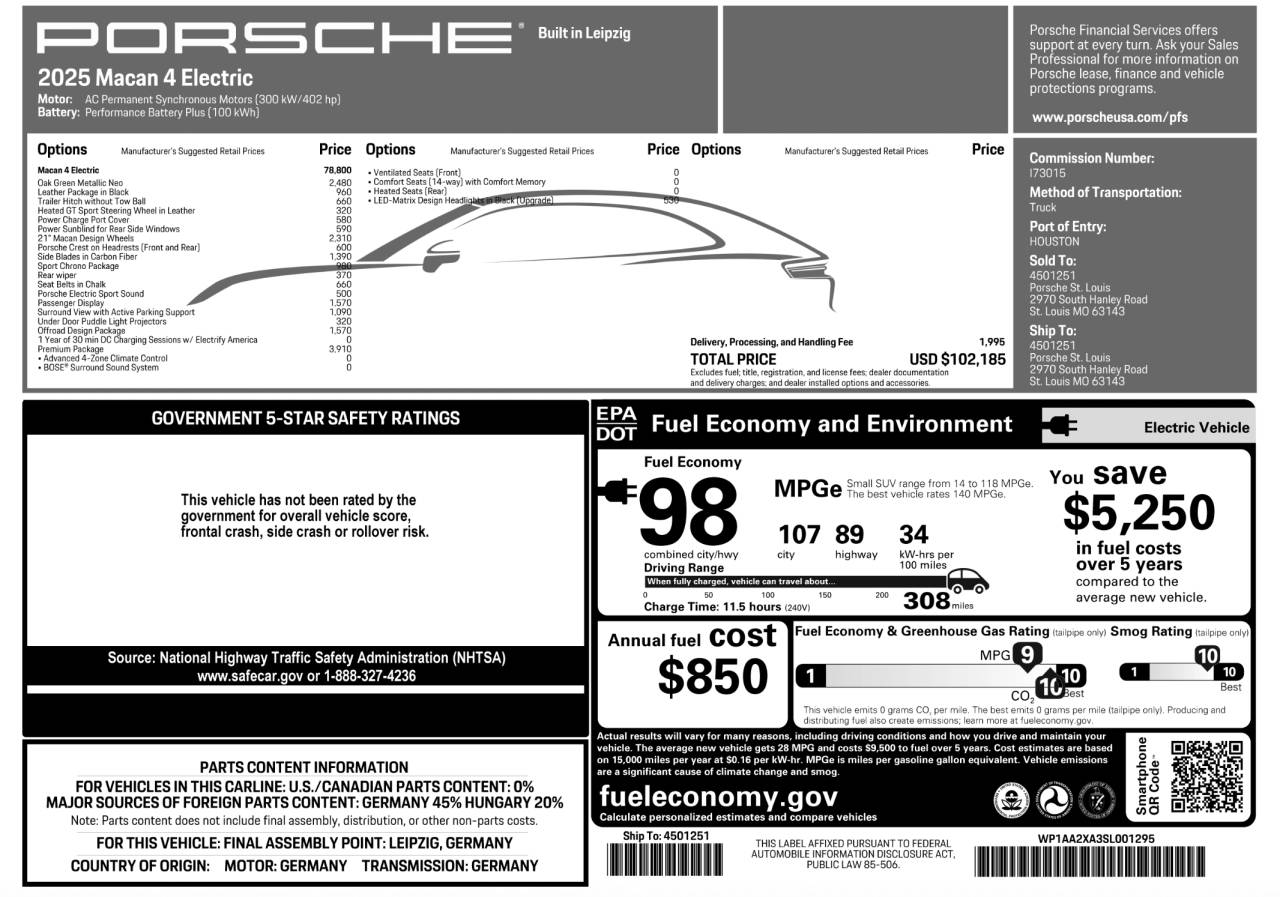 This 2025 Porsche Macan 4 is available now at Porsche St. Louis, offering a thrilling all-electric driving experience with uncompromising luxury and versatility.
