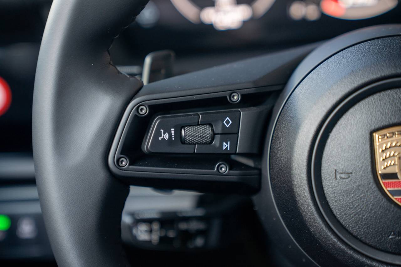 Step inside and the Standard Interior in Black welcomes you with a driver-focused environment crafted with precision. The Premium Package enhances comfort with Ventilated Front Seats and Heated Rear Seats, complemented by 4-Zone Climate Control and an advanced Air Quality System. The Heated GT Sport Steering Wheel in Leather and Porsche Crest on Front and Rear Headrests add refined sportiness, while the Passenger Display and Head-Up Display integrate cutting-edge technology seamlessly into the cabin. Night Vision Assist and Surround View with Active Parking Support elevate confidence and convenience, and the BOSE Surround Sound System delivers immersive audio quality throughout. Rear 2+1 Seating and the Storage Package provide additional versatility for daily usability.