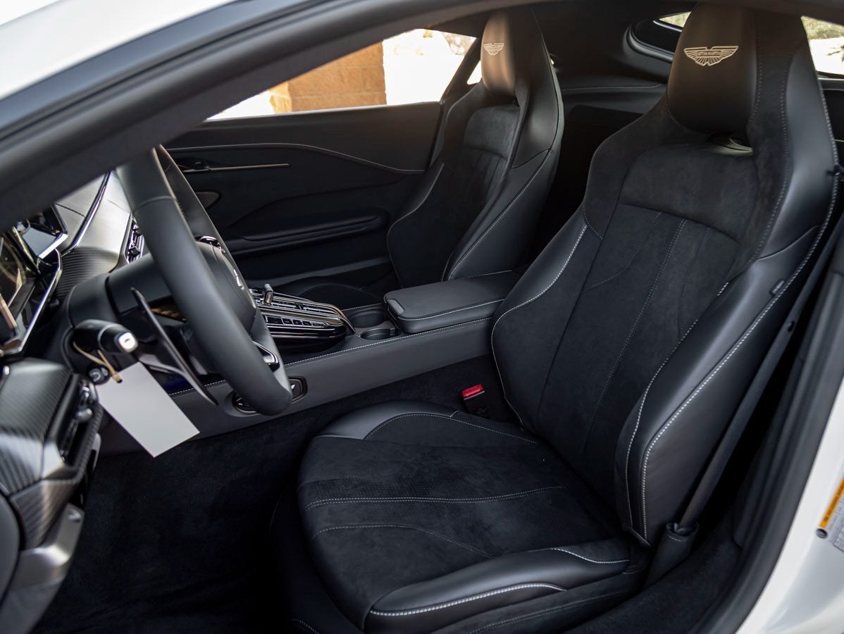 Engine and Performance: Beneath the sculpted hood lies a thrilling 4.0-liter Twin-Turbocharged V8 engine delivering a commanding 656 horsepower and 590 lb-ft of torque. This powerplant is paired to a smooth and responsive 8-Speed Automatic Transmission that channels power to the rear wheels for a pure, performance-driven experience. From a standstill to high speeds, the Vantage responds with breathtaking agility and unmistakable Aston Martin character.