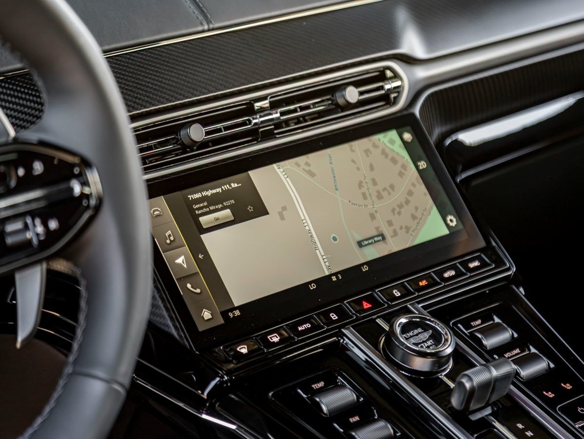 - Radio: 390-Watt AM/FM/HD/DAB Aston Martin Audio System -inc: 11 speakers, 10.25" TFT touch screen central display, wireless Apple CarPlay, wired Android Auto, wireless phone charging, Bluetooth® mobile phone connectivity w/audio streaming, natural voice control, satellite navigation system, SiriusXM satellite radio, 2 USB ports and 12v charging socket