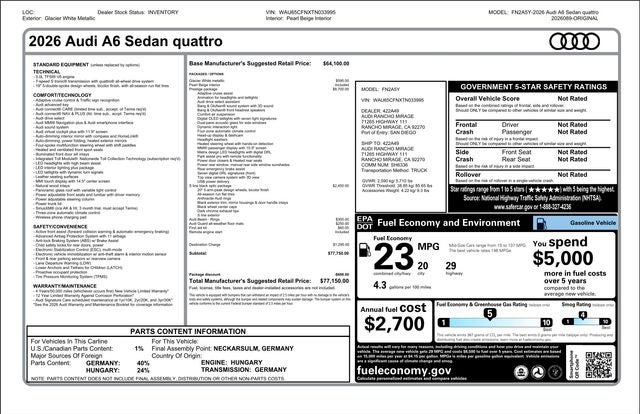 This 2026 Audi A6 3.0 Prestige quattro showcases Audis commitment to luxury and performance. Available at Audi Rancho Mirage, it invites you to elevate your driving experience.