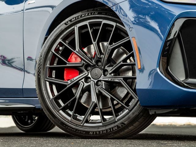The bold presence of the 2026 Audi A6 is enhanced by the vibrant Ascari Blue Metallic finish, highlighting its sleek lines and athletic stance. The Sport Plus Package elevates its dynamic character with performance-inspired styling and enhancements, while signature Audi Beam Rings project the iconic Audi logo onto the pavement for a distinctive and sophisticated touch.