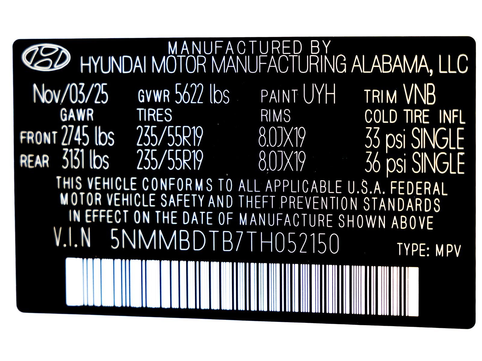 - Front Tire Size: P235/55VR19
