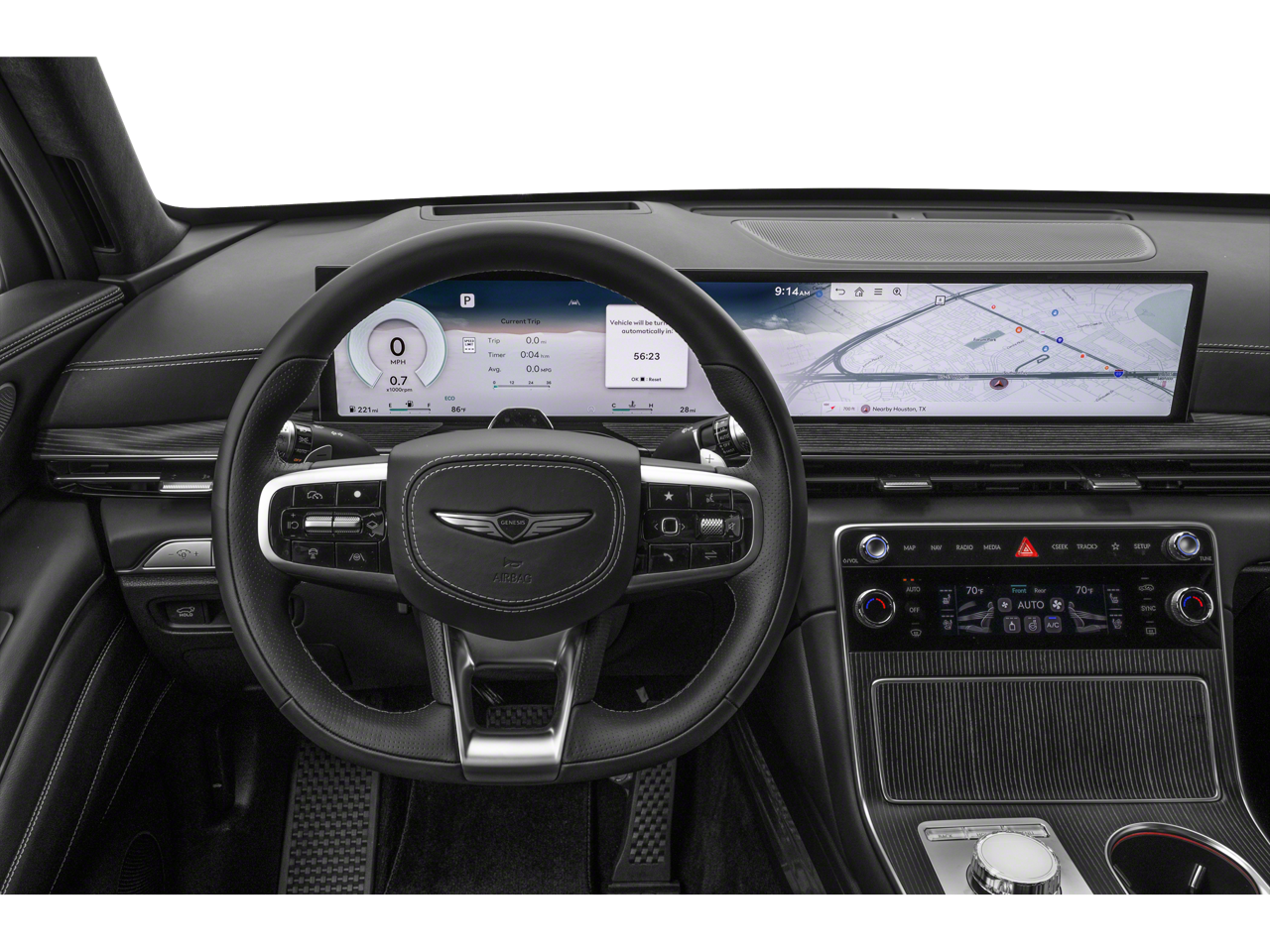 - Radio: AM/FM/HD Bang & Olufsen Premium Audio -inc: 18 speakers, 14-channel amplifier w/1,400 watts max output, 27" integrated OLED screen and navigation system, SiriusXM Radio w/90-day trial subscription (not available in AK or HI), wireless Apple CarPlay and Android Auto, Genesis connected services, Bluetooth® hands-free phone and audio streaming system, Wi-Fi hotspot and USB connectivity
