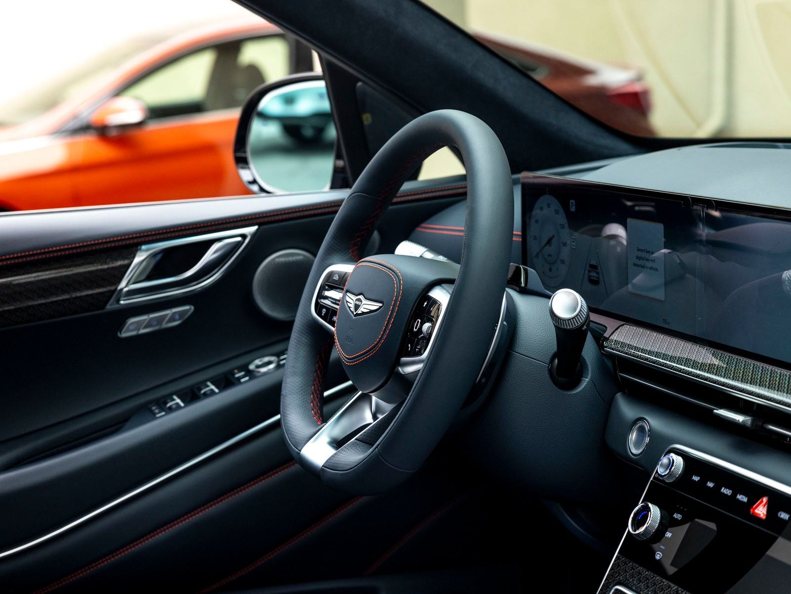 - Radio: AM/FM/HD Bang & Olufsen Premium Audio -inc: 18 speakers, 14-channel amplifier w/1,400 watts max output, 27" integrated OLED screen and navigation system, SiriusXM Radio w/90-day trial subscription (not available in AK or HI), wireless Apple CarPlay and Android Auto, Genesis connected services, Bluetooth® hands-free phone and audio streaming system, Wi-Fi hotspot and USB connectivity