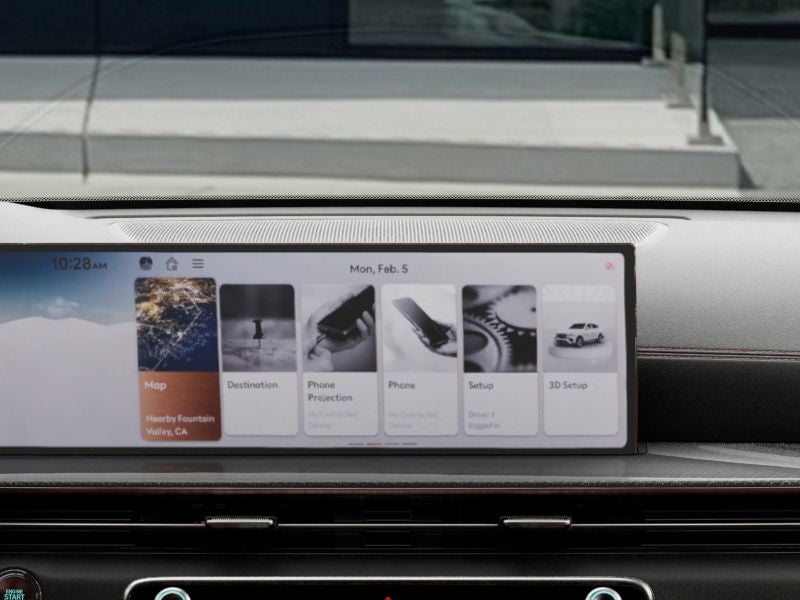 • Radio: AM/FM/HD Bang & Olufsen Premium Audio -inc: 18 speakers, 14-channel amplifier w/1,400 watts max output, 27" integrated OLED screen and navigation system, SiriusXM Radio w/90-day trial subscription (not available in AK or HI), wireless Apple CarPlay and Android Auto, Genesis connected services, Bluetooth® hands-free phone and audio streaming system, Wi-Fi hotspot and USB connectivity
