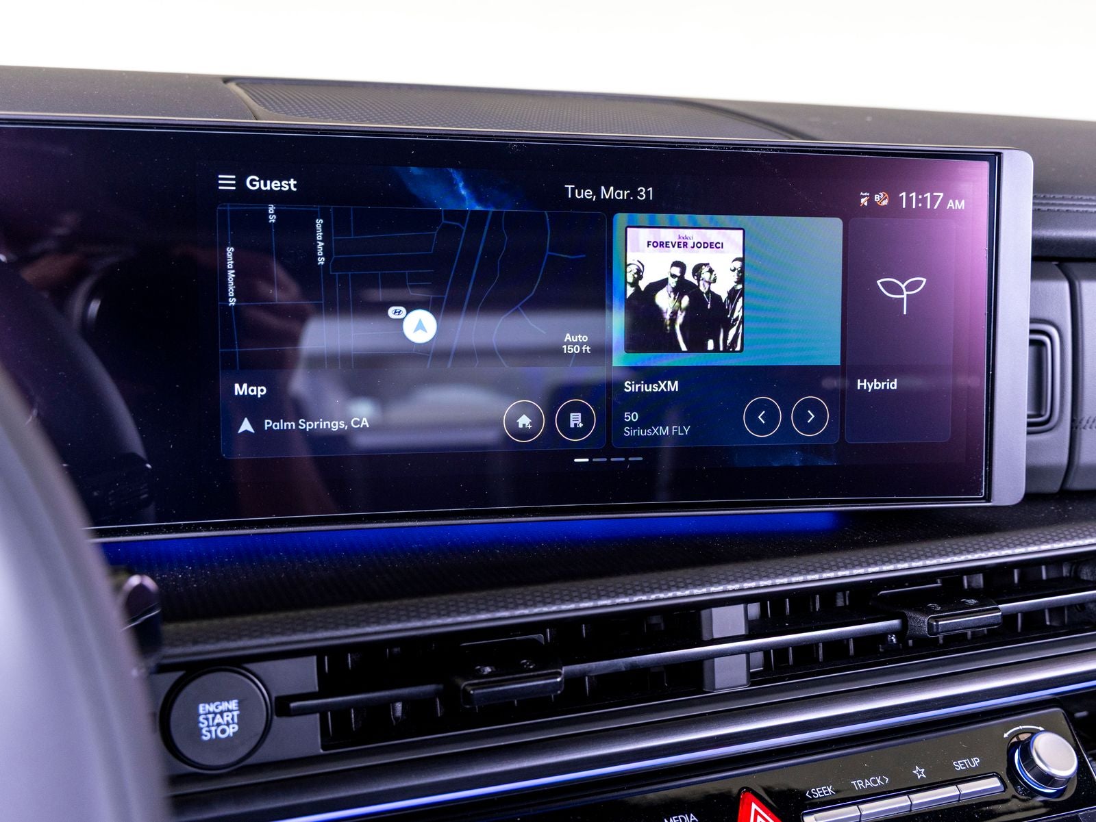 • Radio: AM/FM/HD Bose Premium Audio System -inc: 12 speakers including subwoofer, external amplifier, 12.3" wide touchscreen, wireless Apple CarPlay and Android Auto, Bluetooth® hands-free w/wireless audio streaming, dynamic voice recognition, USB connectivity, SiriusXM, wifi hotspot, Blue Link connected car system, navigation system including traffic flow w/incident data via HD Radio (HERE), OTA updates and rear seat quiet mode