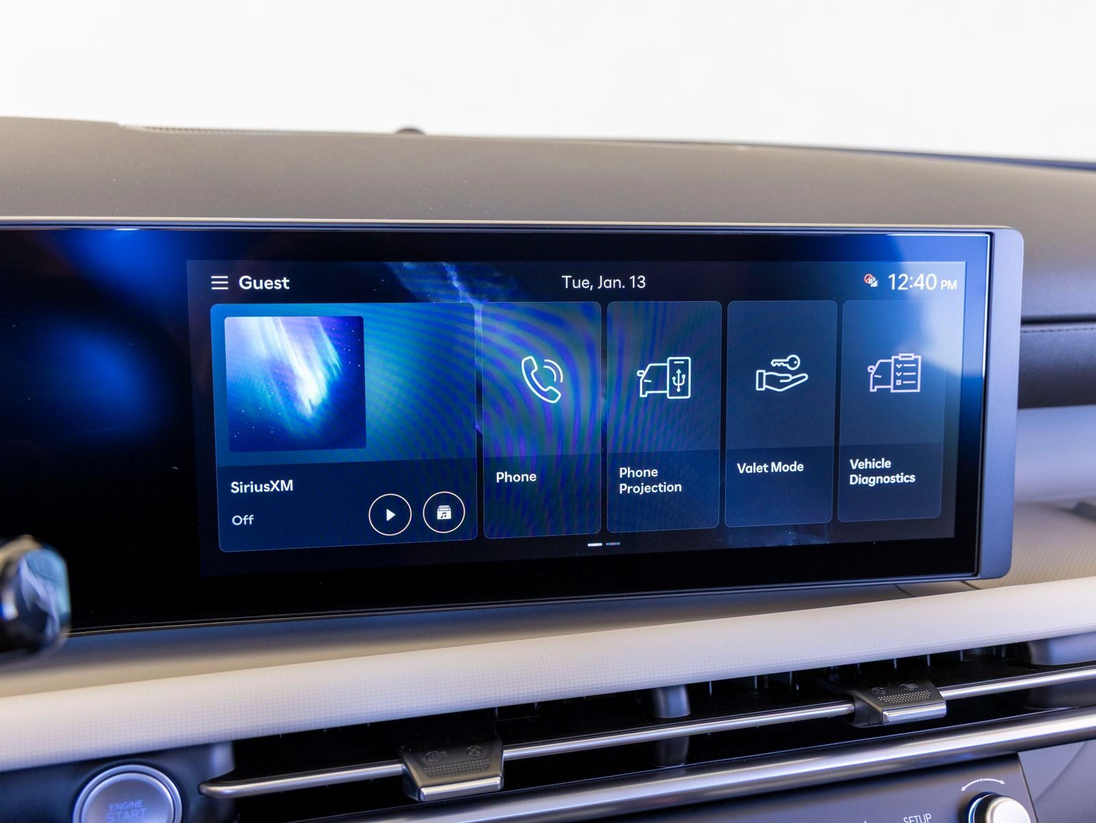 - Radio: AM/FM/HD Audio System -inc: 12.3" color touchscreen display, 6 speakers, SiriusXM satellite radio system (3-month trial subscription), wireless Apple CarPlay and Android Auto integration, controller OTA update capability, Blue Link connected car system and USB connectivity