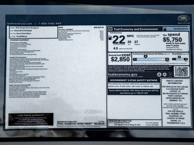 This 2026 Land Rover Range Rover Evoque S offers a perfect balance of luxury, technology, and versatility in a compact SUV. Now available at Land Rover Rancho Mirage, its ready to elevate your daily drive with style and confidence.
