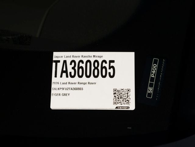 Land Rover Rancho Mirage is delighted to showcase, this Brand New 2026 Land Rover Range Rover SE SWB P400 Dressed in an elegant Eiger Grey Metallic and paired with a rich Caraway / Caraway Windsor Leather interior, this vehicle embodies the perfect balance of modern luxury, craftsmanship, and commanding performance.