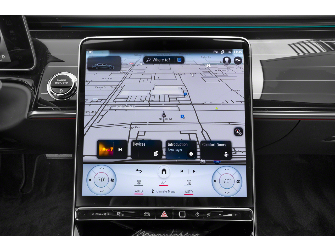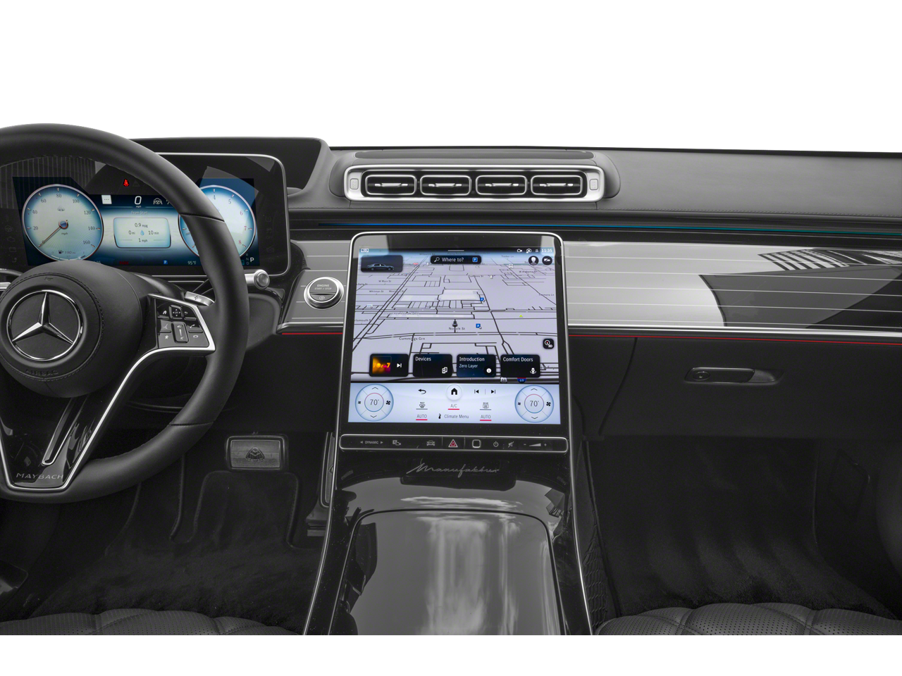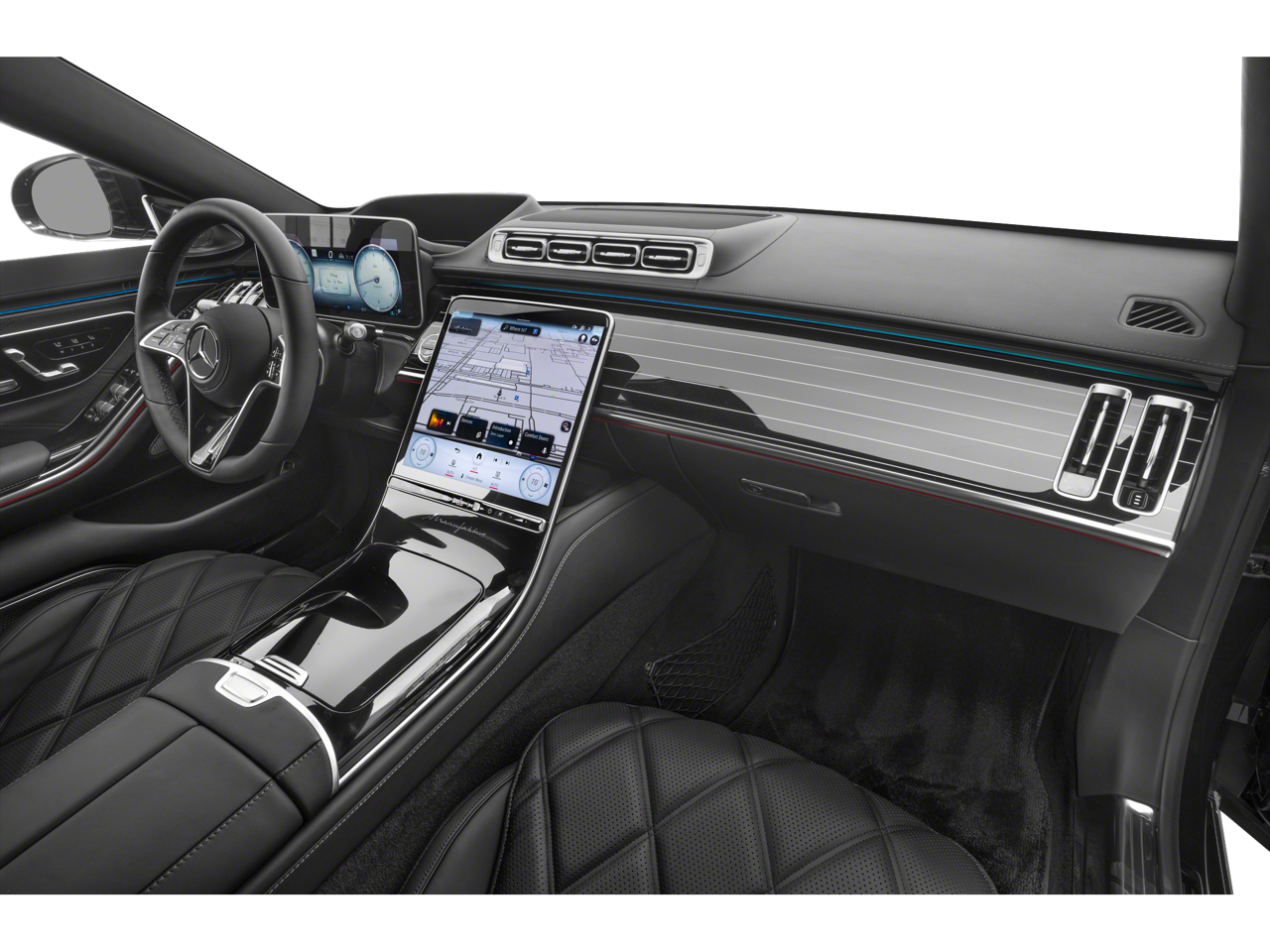• Radio: Burmester 4D Surround Sound System -inc: sound personalization, 12.8" OLED touchscreen center display, MBUX w/navigation and Hey Mercedes voice control, augmented video for navigation, wireless smartphone integration (Apple CarPlay, Android Auto), 8 USB-C ports (4 front, 4 rear), SiriusXM extended subscription, 5G capability and online music streaming