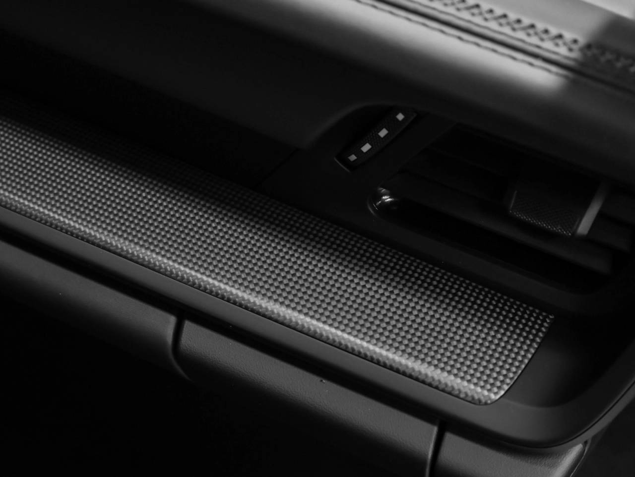 Interior Trim Inlays in Matte Carbon Fiber and Trim in Black