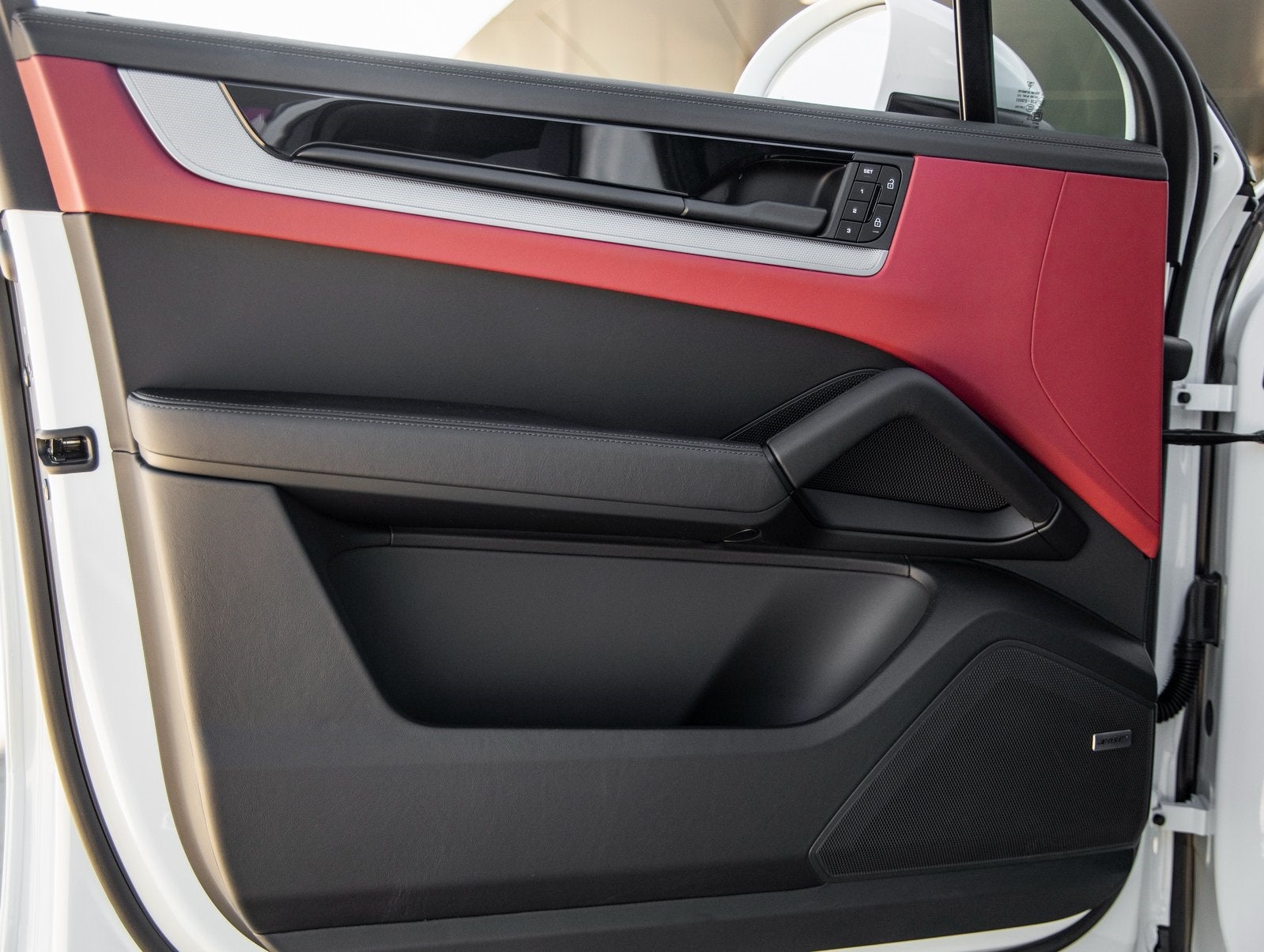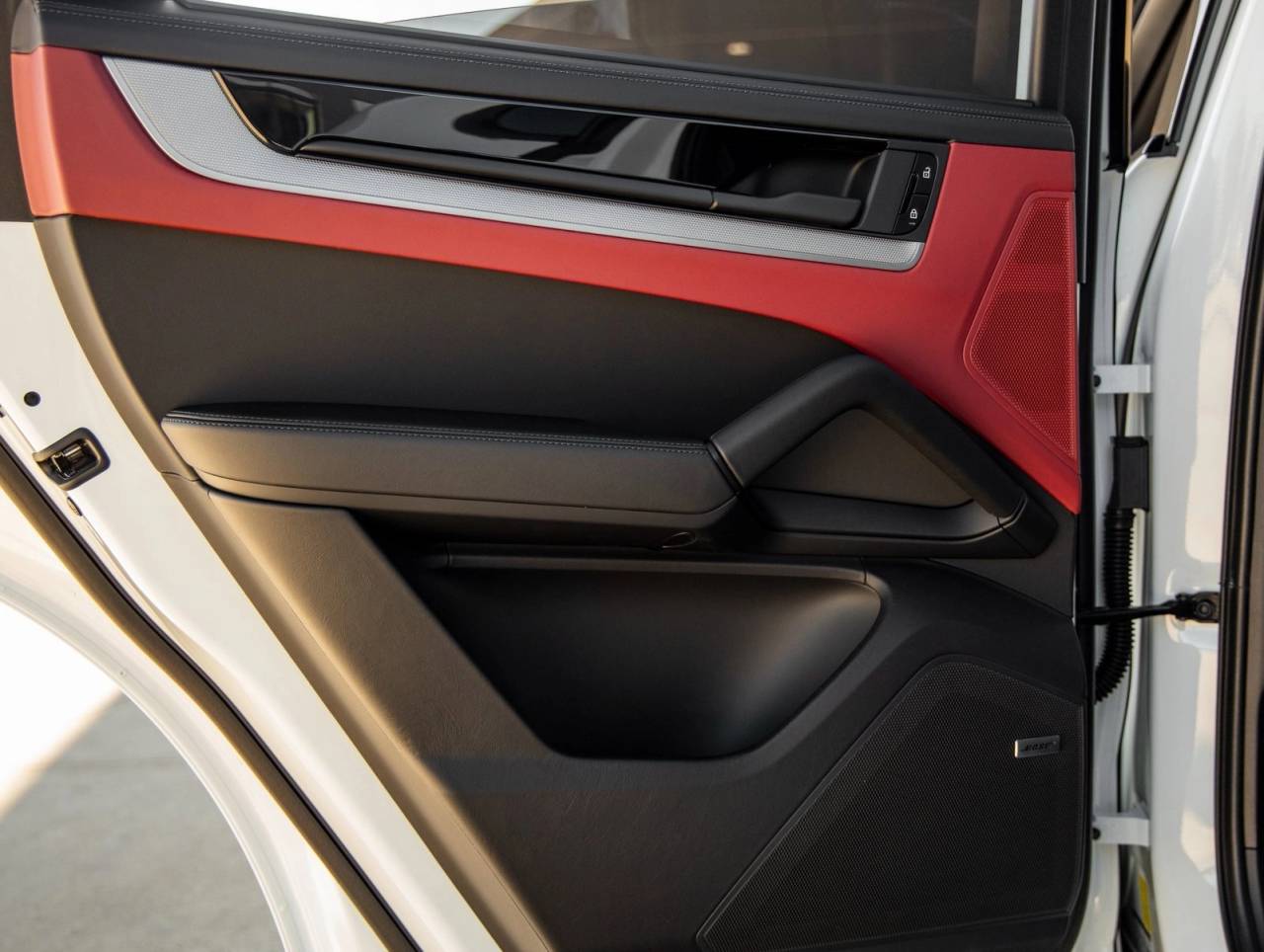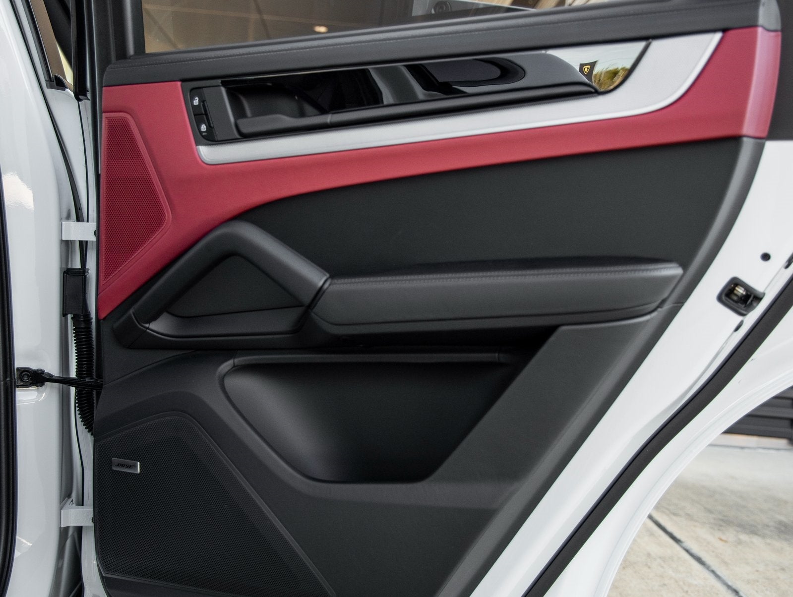 Step inside to the inviting Leather Interior in Black/Bordeaux Red, where luxury meets athleticism. The cabin is equipped with 14-way Power Seats with Comfort Memory, Ventilated Front Seats, and Heated Rear Seats to ensure optimal comfort. A BOSE Surround Sound System fills the cabin with premium audio, while the Porsche Crest on the Front Headrests and Under Door Puddle Light Projectors deliver signature Porsche elegance. The Thermally & Noise Insulated Glass and Power Sunblinds for Rear Side Windows add refinement and privacy.