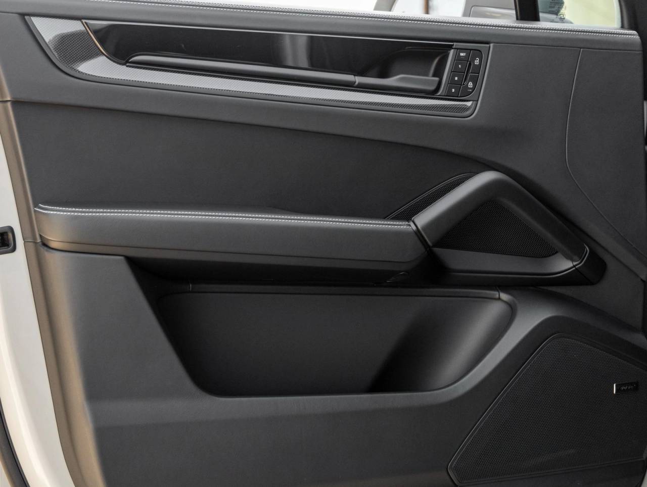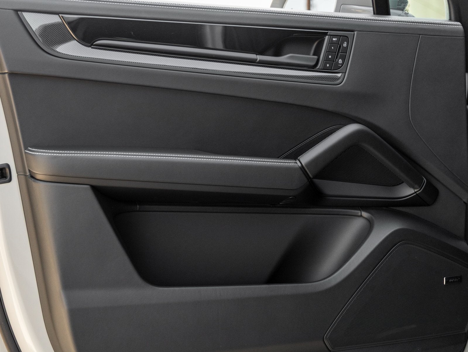 Inside, the Club Leather Interior in Basalt Black with Chalk Cross-Stitching showcases Porsche's craftsmanship. 18-way Adaptive Sport Seats Plus with memory, Heated Rear Seats, Ventilated Front Seats, and 4-Zone Climate Control offer elevated comfort. The cabin is adorned with Carbon Fiber Interior Trim, Heated GT Sport Steering Wheel in Leather with Carbon Trim, and Illuminated Carbon Fiber Door-Sill Guards. Additional custom touches include the Porsche Crest on Headrests, Deviated Stitching Package, and Center Console Armrest with Model Designation.