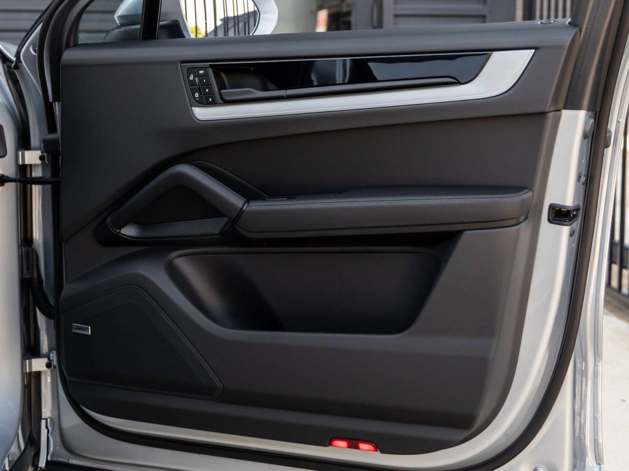 The Cayenne E-Hybrid Coupe stands as a beacon of design and performance, its Dolomite Silver Metallic exterior paired with 22 RS Spyder Design Wheels and Exclusive Design Taillights gives it an athletic yet elegant stance. The SportDesign Front Fascia and Sport Tailpipes in Dark Bronze amplify its dynamic presence, while Under Door Puddle Light Projectors add a subtle touch of luxury.