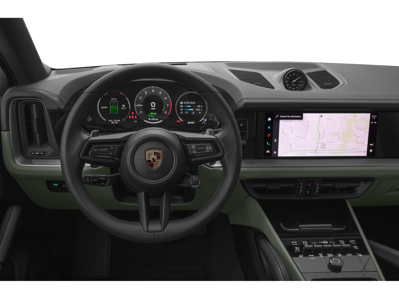 Engine and Performance: At the heart of this plug-in hybrid SUV is a 3.0-liter turbocharged V6 engine paired with an electric motor, delivering a combined output of 463 horsepower and 479 lb-ft of torque. This hybrid powertrain is mated to an 8-speed Tiptronic S transmission, enabling a dynamic yet efficient driving experience. With Adaptive Cruise Control including Lane Keep Assist, this Cayenne E-Hybrid Coupe exemplifies the harmony between performance, innovation, and everyday usability.