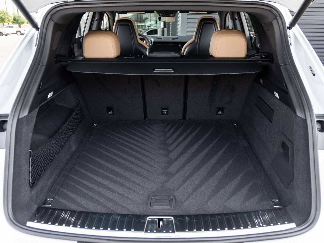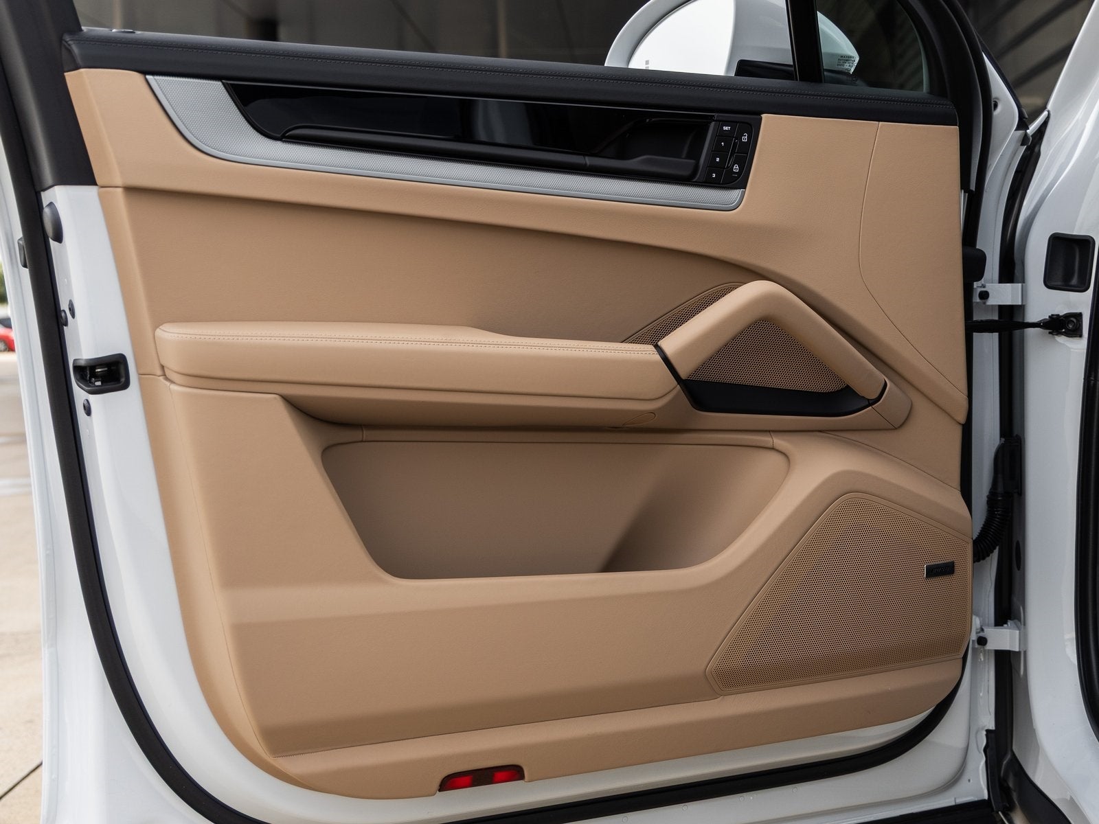 The Cayenne stands as a benchmark for luxury SUVs, its Carrara White Metallic exterior exuding refinement and strength. Accented by striking 21 RS Spyder Design Wheels and Sport Tailpipes in Dark Bronze, the vehicle projects a bold presence. The HD-Matrix Design LED Headlights ensure superior visibility and an unmistakable front-end aesthetic, while Window Trim in High Gloss Black and Under Door Puddle Light Projectors add subtle elegance.