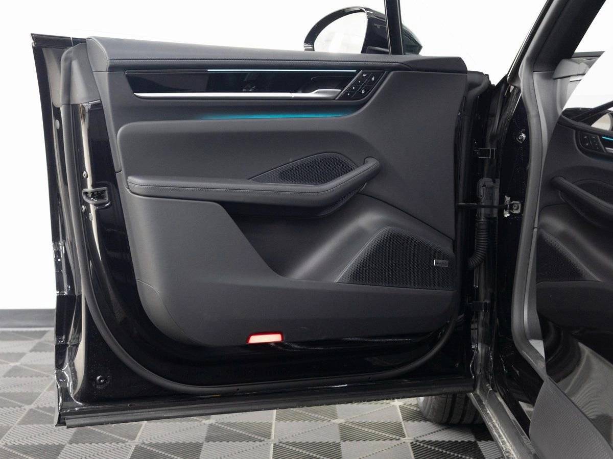 The Macan 4S Electric stands as a beacon of progressive design and electrified performance, its Lugano Blue exterior not just a color, but a bold expression of Porsches forward-thinking DNA. Adorned with striking 22 Macan Sport Wheels and LED-Matrix Design Headlights, it presents a powerful and athletic stance. The Premium Package enhances refinement and innovation, while Window Trim in High Gloss Black and Roof Rails in Black Aluminum add a sleek and purposeful touch. Preparation for Porsche Dashcam further highlights its modern capability and convenience.