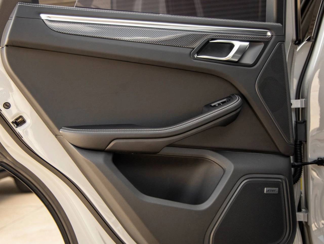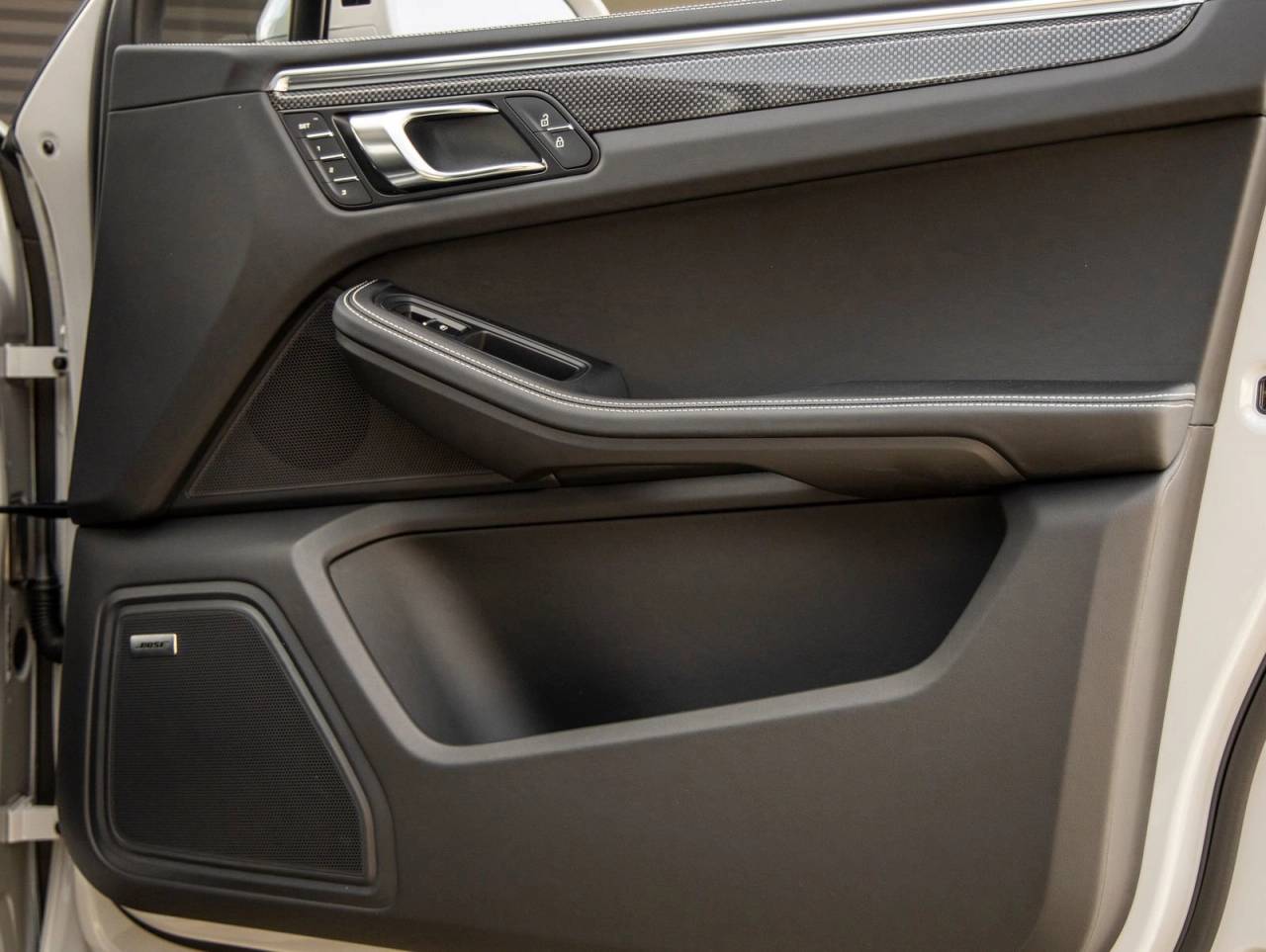 Step inside and the Leather Interior in Black with Deviated Stitching in Chalk greets you, exuding an air of luxury that only Porsche can deliver. The Adaptive Sport Seats Plus (18-way) with Memory Package, Heated GT Sport Steering Wheel in Leather, and Carbon Fiber Interior Trim elevate the cabin experience. Additional refinements such as the Race-Tex Roof Lining, Illuminated Carbon Fiber Door-Sill Guards, and a BOSE Surround Sound System create an environment that is both performance-focused and indulgently comfortable.