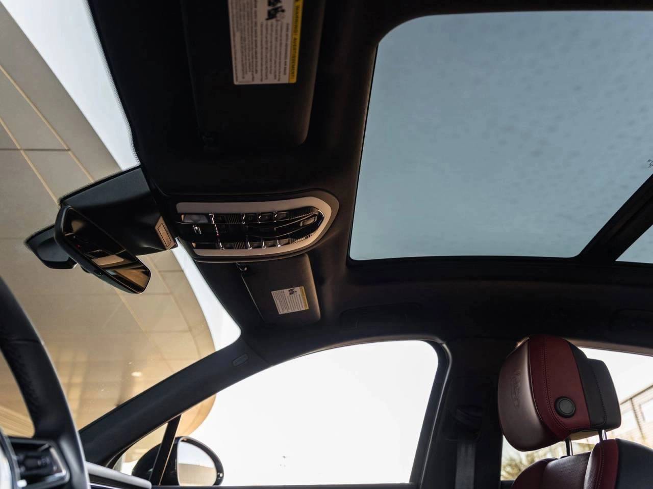Inside, the Black/Bordeaux Red Leather Interior surrounds you in luxury. Enjoy comfort features like 14-way Power Seats with Memory, Ventilated Front Seats, Heated Rear Seats, and a Heated Steering Wheel. A Panoramic Roof System brings in natural light, while the BOSE Surround Sound System delivers premium audio. Details like the Porsche Crest on Front Headrests elevate the experience.