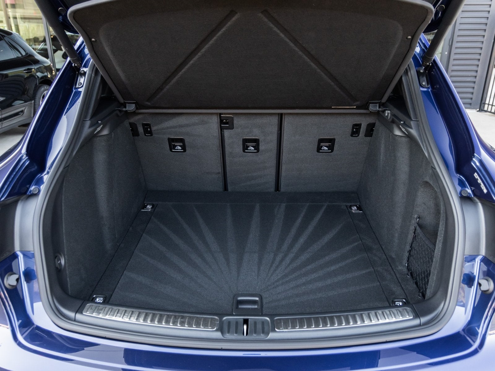 The Macan stands as a beacon of design and versatility, its Gentian Blue Metallic exterior not just a color, but a reflection of Porsche's elegant yet athletic spirit. Adorned with 21 RS Spyder Design Wheels, LED Headlights including Porsche Dynamic Light System Plus (PDLS+), Sport Tailpipes in Black, and Roof Rails in High Gloss Black, it presents a commanding and stylish stance on any road. The Panoramic Roof System further enhances the sense of openness and luxury.
