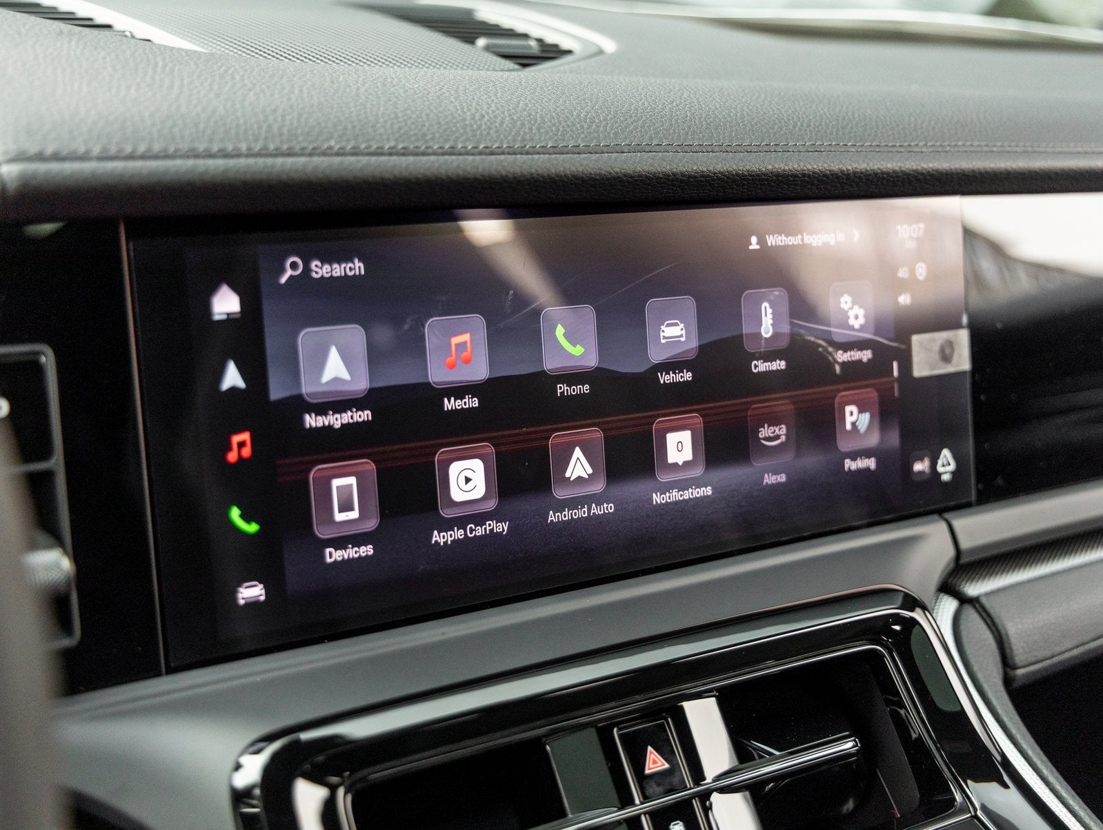 Step inside and the Standard Interior in Black delivers a sanctuary of luxury. Enjoy the comfort of Heated Rear Seats, Ventilated Front Seats, and a 4-Zone Climate Control system enhanced by the Air Quality System. The Heated GT Sport Steering Wheel in Leather and Porsche Crest on Headrests underscore the attention to detail, while the Exclusive Design Taillights and Door-Sill Guards in Black Brushed Aluminum, Illuminated offer subtle touches of exclusivity. A Head-Up Display ensures key driving data is always in your line of sight.