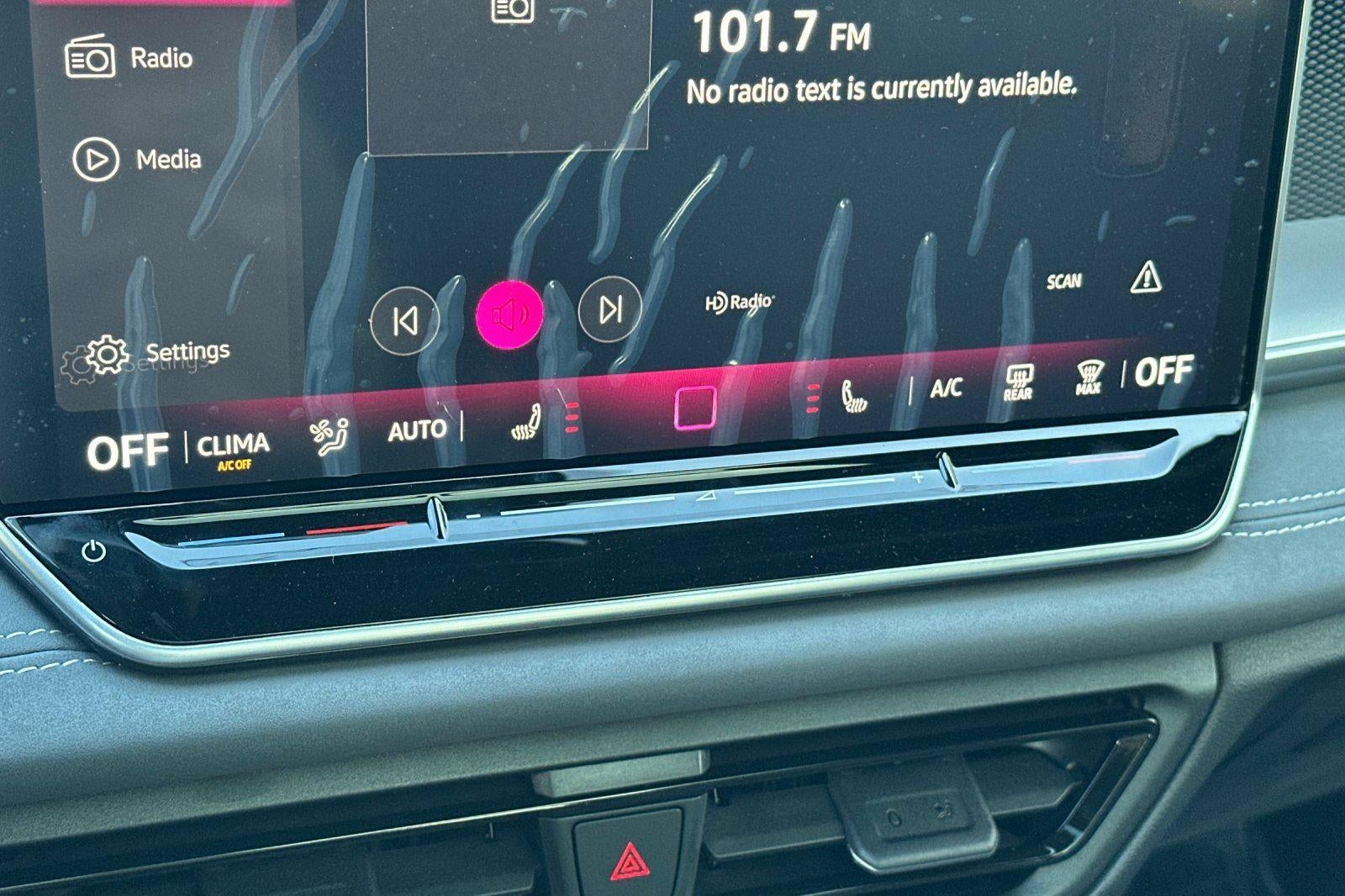 - MIB4 Composition Media Touchscreen w/AM/FM Radio -inc: WMA/MP3/FLAC player w/USB, 12.9" touchscreen multi-function center display w/backlit sliders, voice control, 6 speakers + center speaker (7 speakers total) sound system, capability for in-vehicle 4G LTE enabled Wi-Fi (cellular data plan required; includes limited trial), capability for connected vehicle services (capabilities for services vary; requires enrollment or subscription), Bluetooth® connectivity (for compatible devices), SiriusXM w/360L (w/3-month free trial subscription; 360L services require acceptance of Car-Net terms), App-Connect smartphone integration (w/Apple CarPlay, Android Auto and MirrorLink) via USB, wireless App-Connect smartphone integration (for compatible devices) w/multi-phone pairing capability, 45W fast charging (for compatible mobile phones and accessories) via USB in both rows and Qi wireless inductive charger, cooled, up to 15W (for compatible mobile phones and accessories) All connected vehicle services are subject to terms and limitations. Some services require a paid subscription. See dealer or vw.com/connected for important details.