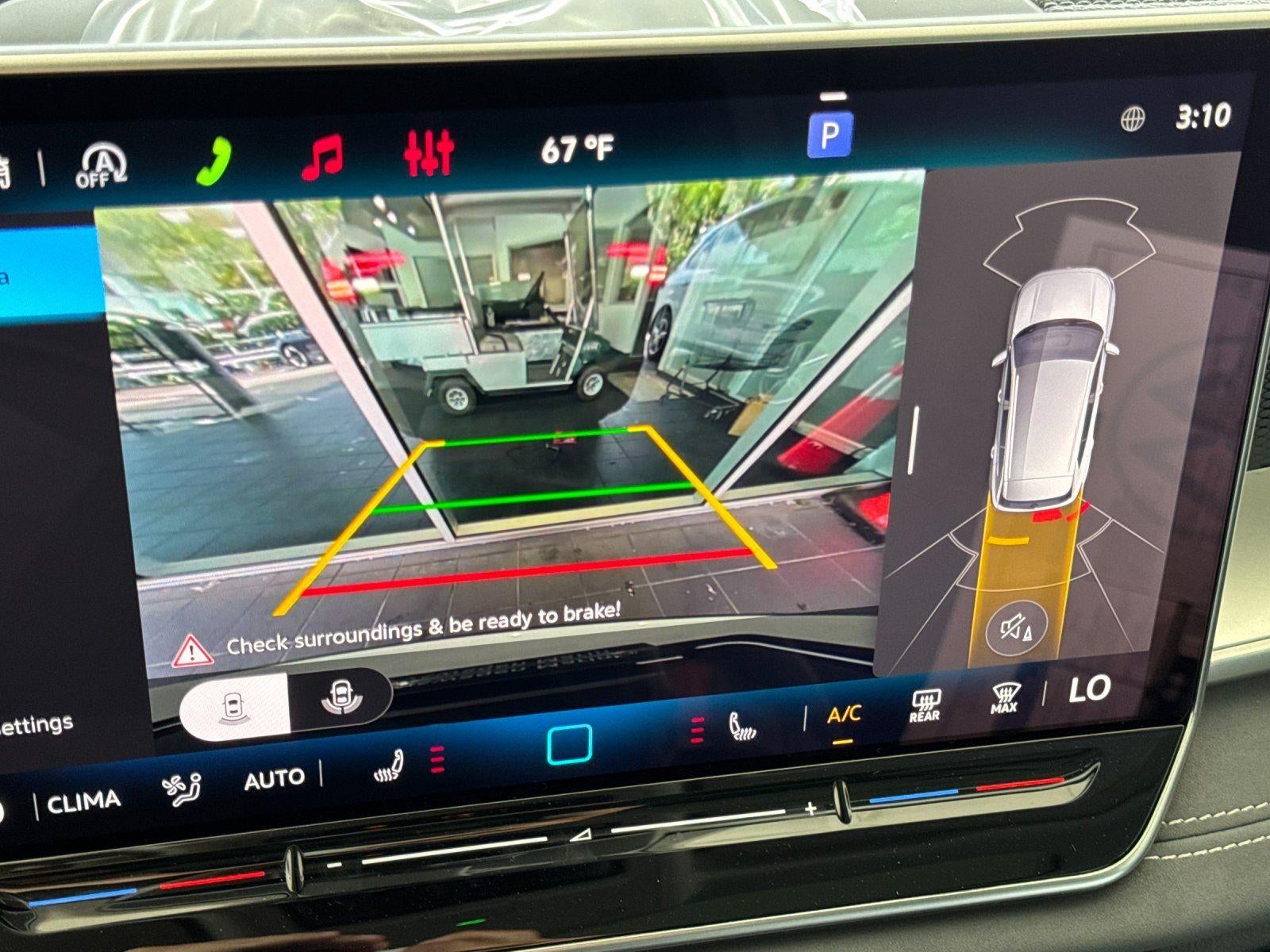 - The vehicle is equipped with a camera that displays an image of the area behind the vehicle on an interior display. The camera is equipped with its own washer.