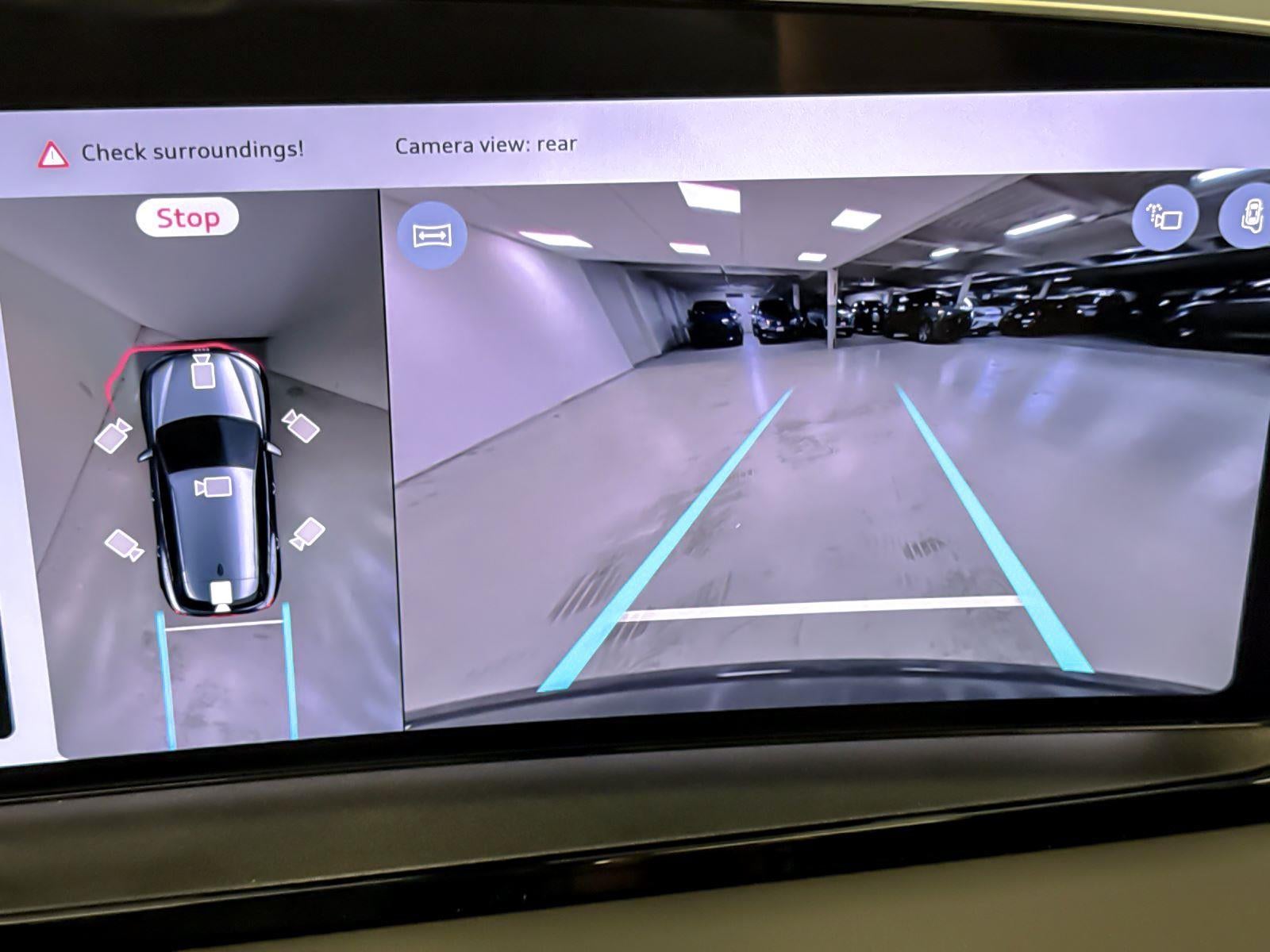 • The vehicle is equipped with a camera that displays an image of the area behind the vehicle on an interior display.