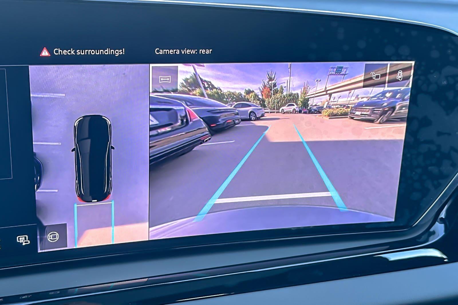 - The vehicle is equipped with a camera that displays an image of the area behind the vehicle on an interior display.