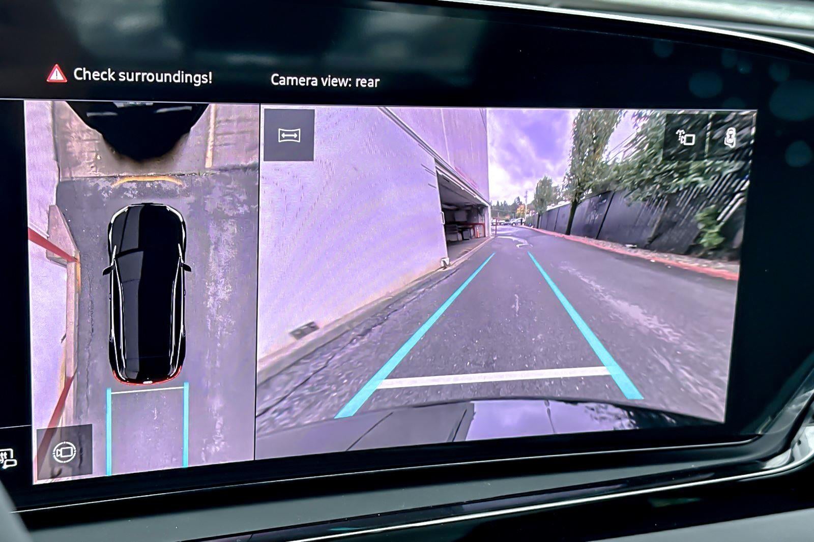- The vehicle is equipped with a camera that displays an image of the area behind the vehicle on an interior display.