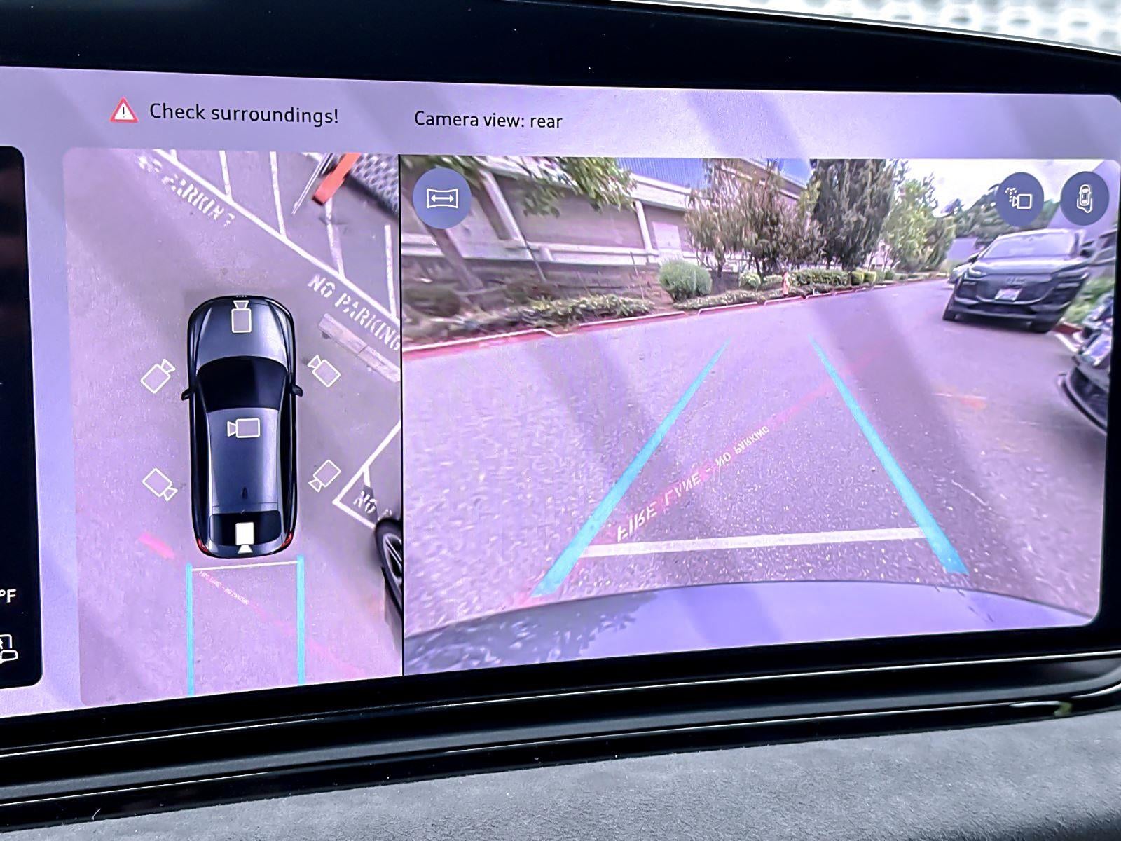 - The vehicle is equipped with a camera that displays an image of the area behind the vehicle on an interior display.