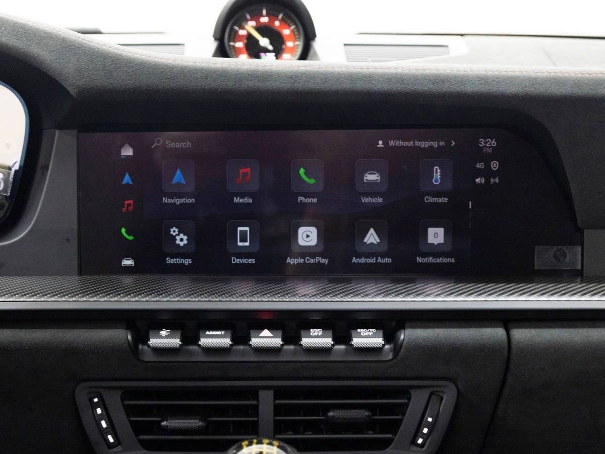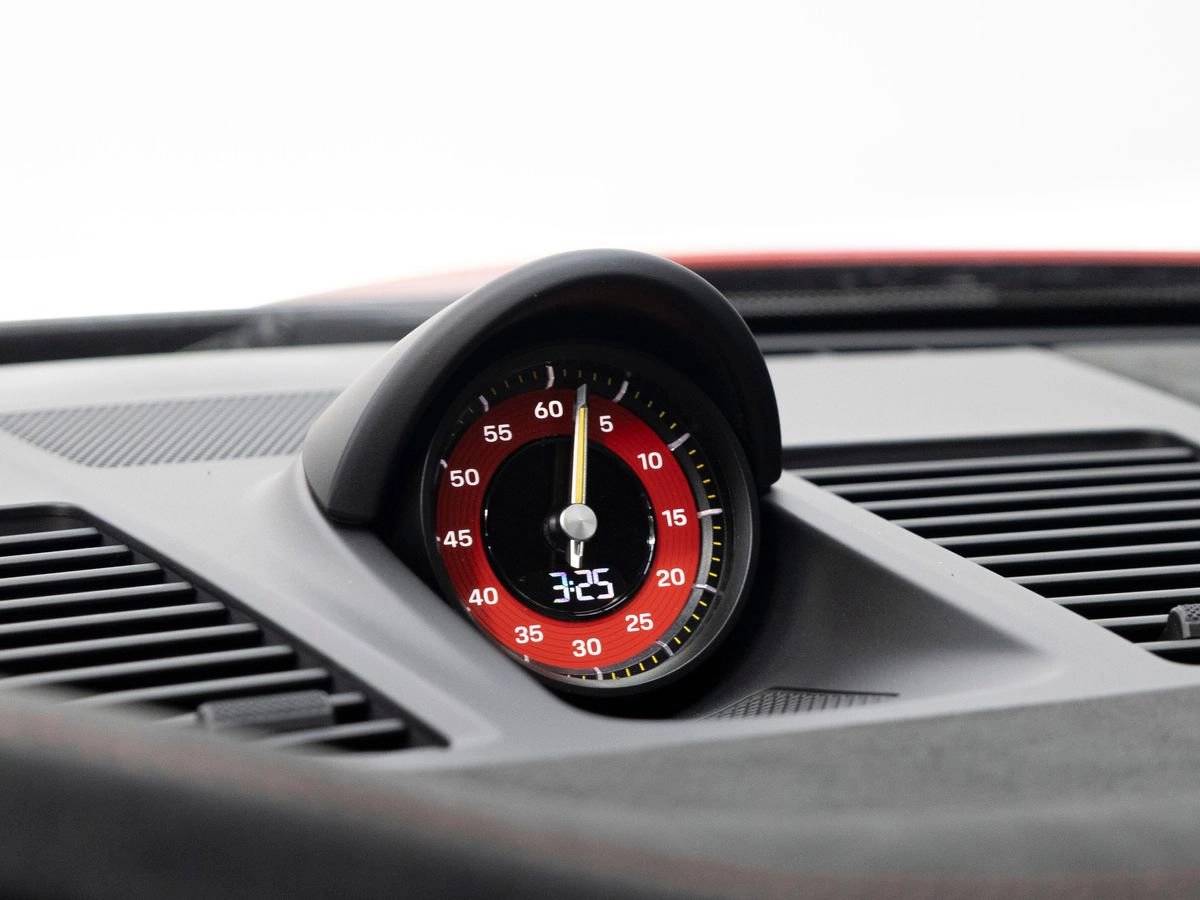Step inside and the Leather/Race-Tex Interior in Black with Guards Red Stitching greets you, exuding an air of luxury that only Porsche can deliver. Adaptive Sport Seats Plus (18-way) provide exceptional support and comfort, while Guards Red Seat Belts and a Chrono Stopwatch Dial and Digital Tachometer in Guards Red punctuate the interior with a distinctive motorsport flair. Ambient Lighting, an Ionizer, and the BOSE Surround Sound System complete a cabin crafted for both exhilaration and refinement.