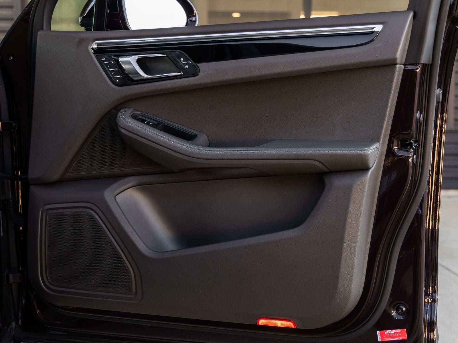 The Macan stands as a beacon of dynamic design, its Copper Ruby Metallic exterior radiating sophistication and sportiness. Equipped with 20 Macan S Wheels in Highly Polished Dark Titanium, it presents a confident and athletic stance. The Panoramic Roof System enhances its sleek profile while inviting natural light into the cabin, further elevating its premium appeal.