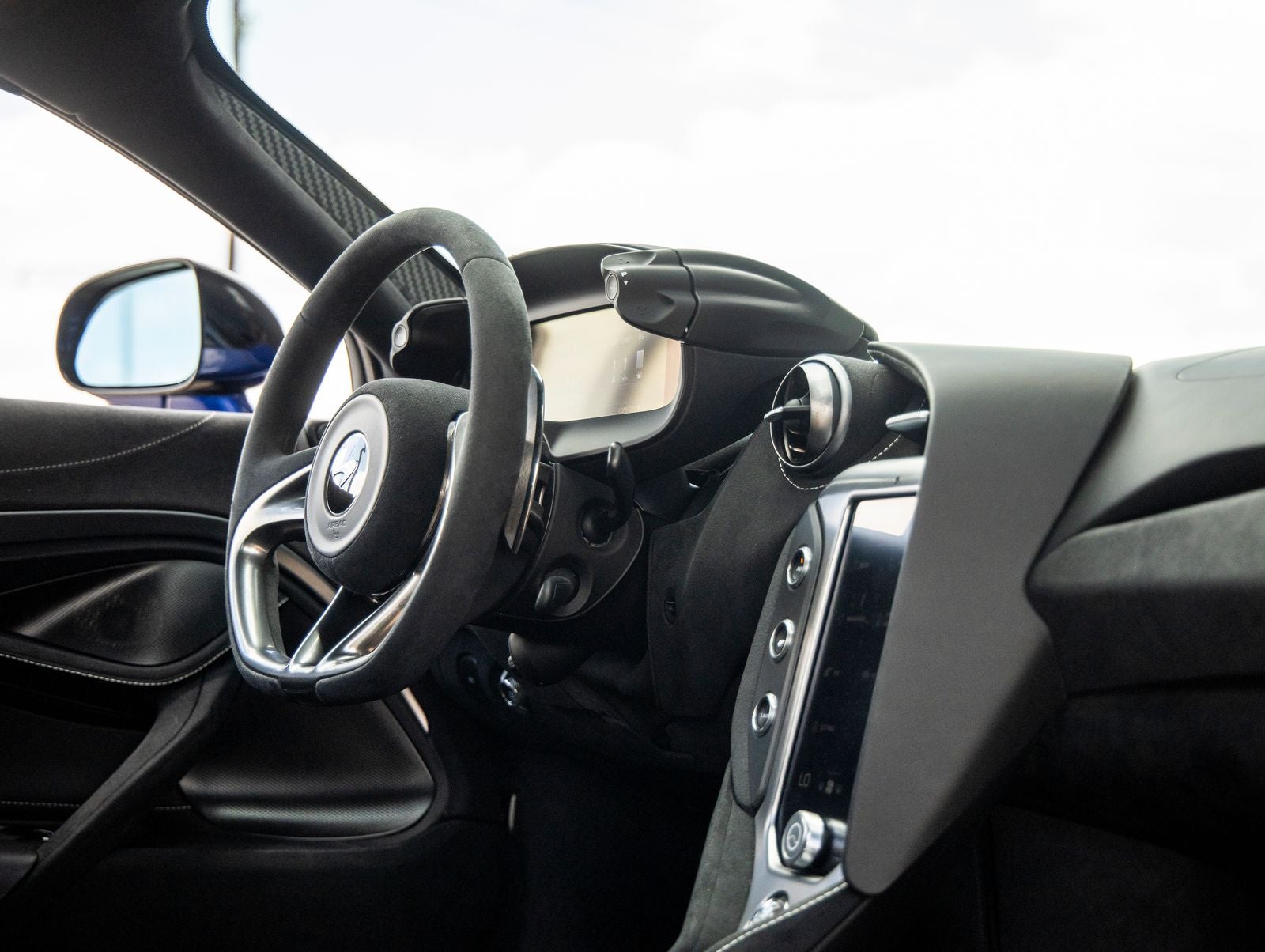 Step inside and the Carbon Black & Jet Black Performance Interior greets you, exuding an air of modern luxury that only McLaren can deliver. Comfort Seats with power adjustment, heating, and memory ensure optimal driving comfort, while Porcelain contrast stitching adds a refined touch. The Carbon Black Alcantara steering wheel and carbon fiber accents throughout the cabin highlight the vehicles race-inspired DNA, complemented by a premium Bowers & Wilkins 12-speaker audio system for an immersive driving experience.