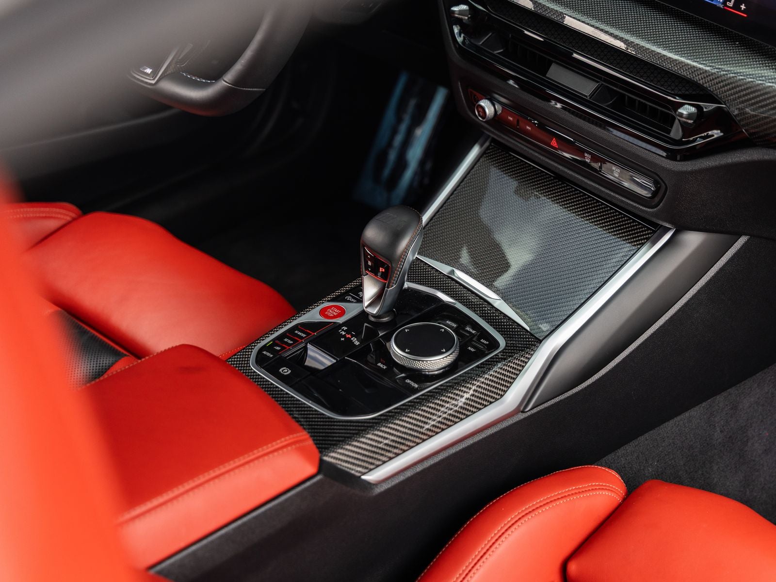 Step inside and the Fiona Red/Black Extended Merino Leather interior greets you, exuding a driver-focused cockpit with premium craftsmanship. M Sport Seats with illuminated logos, Carbon Fiber interior trim, and a Heated Steering Wheel elevate the driving experience. The cabin is further enhanced by a Harman Kardon Surround Sound System and BMW Curved Display with Head-Up Display, seamlessly blending performance with advanced technology.