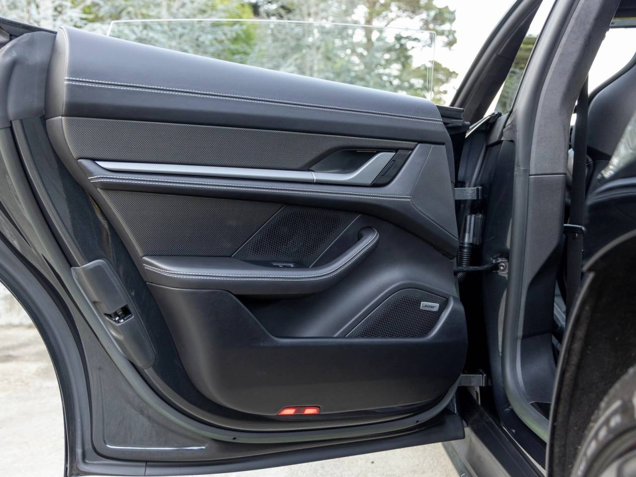 Black Leather Interior with Deviated Stitching in Chalk