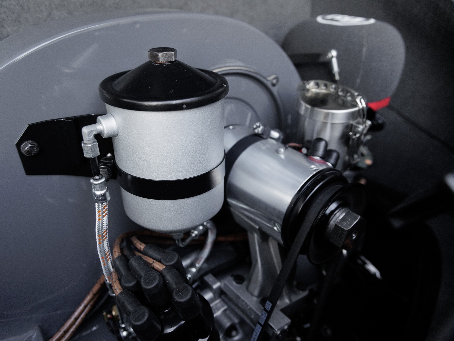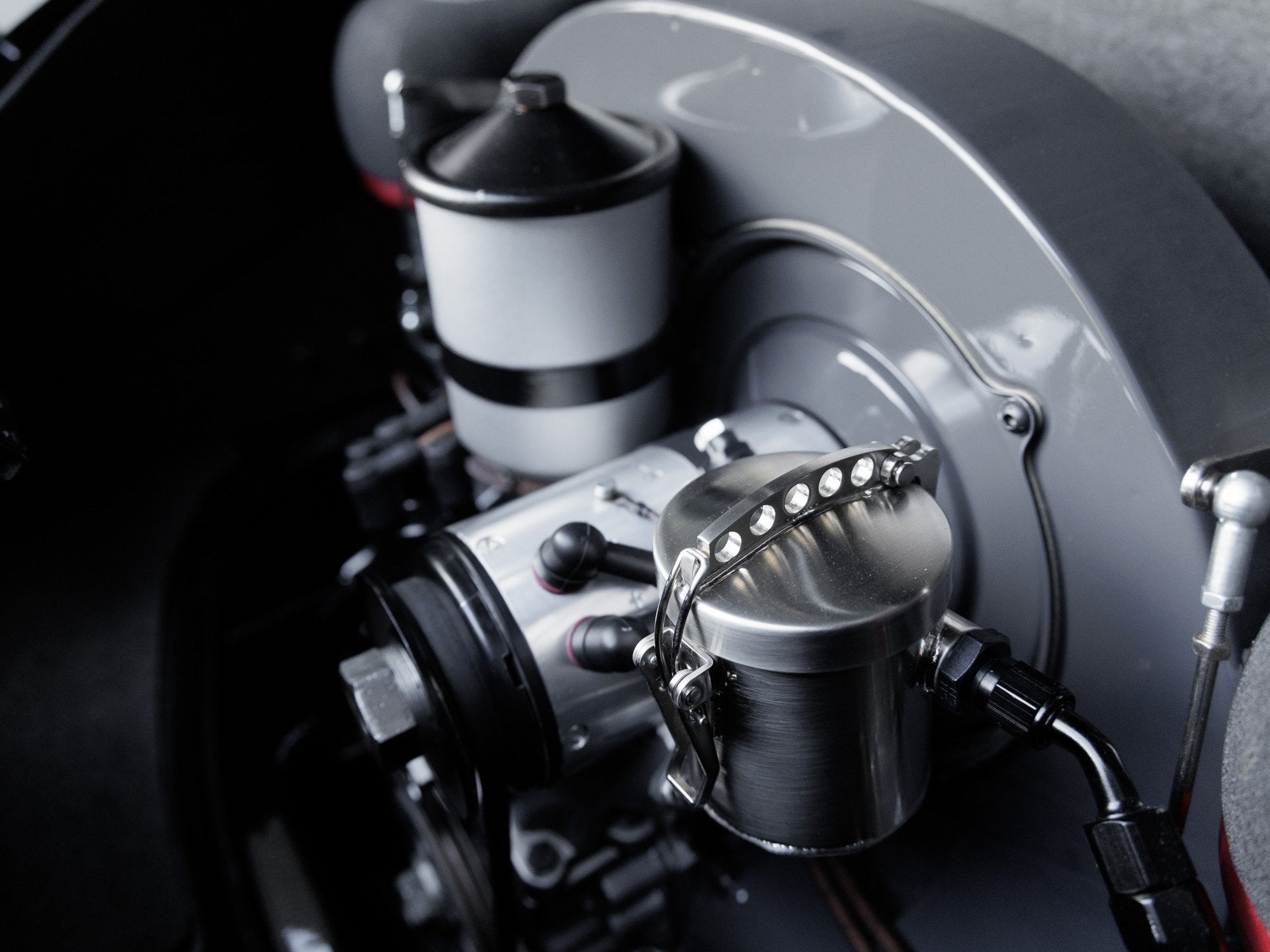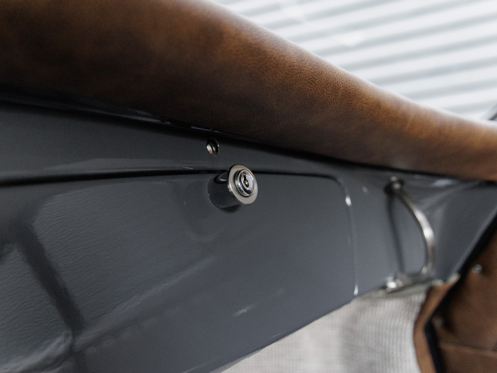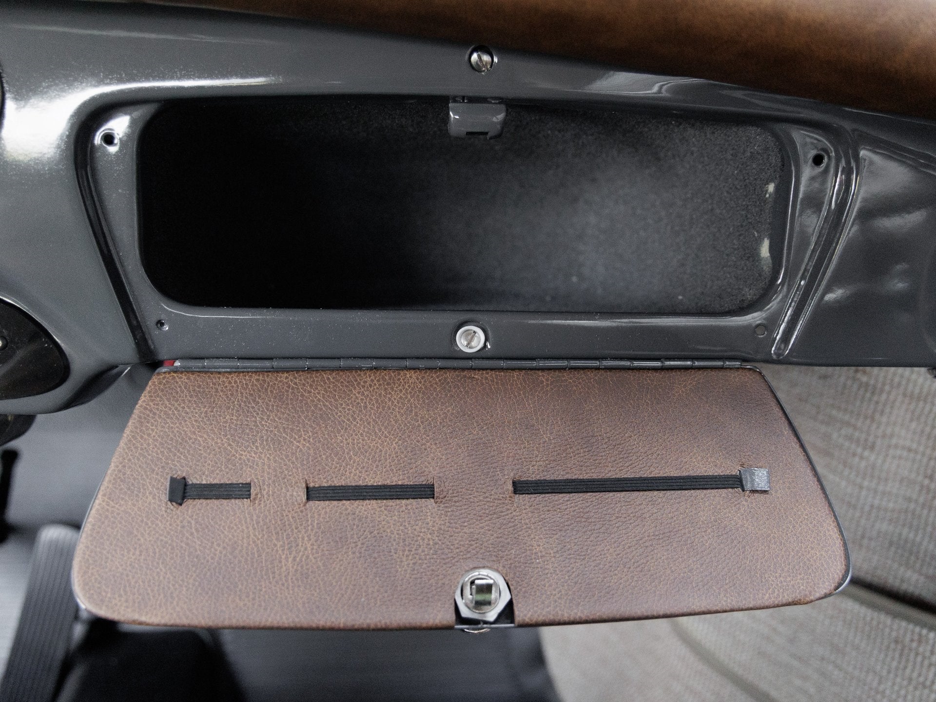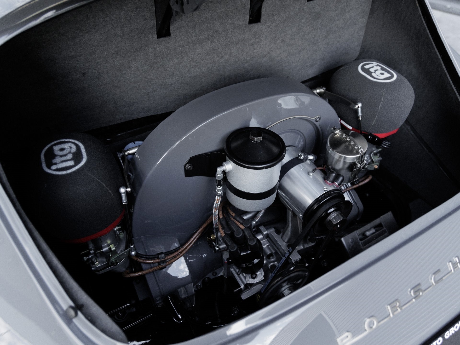 This 1961 356 B T5 was meticulously restored for the 2025 Porsche Restoration Challenge and entered under the personalization category. The body was stripped to bare metal, revealing its true form before receiving custom modifications including the removal of rear reflectors, side trims, and bumper dimples, as well as filling in exhaust cutouts and replacing the damaged front clip with new Porsche components. Finished in Slate Grey Neo with a matte black undercoated underside, this car strikes a bold and purposeful stance. All chrome trim elements, including mirrors, handles, and grilles, have been replated in brushed nickel, while custom aluminum mesh grilles and bespoke front and rear push bars complete its unique aesthetic.