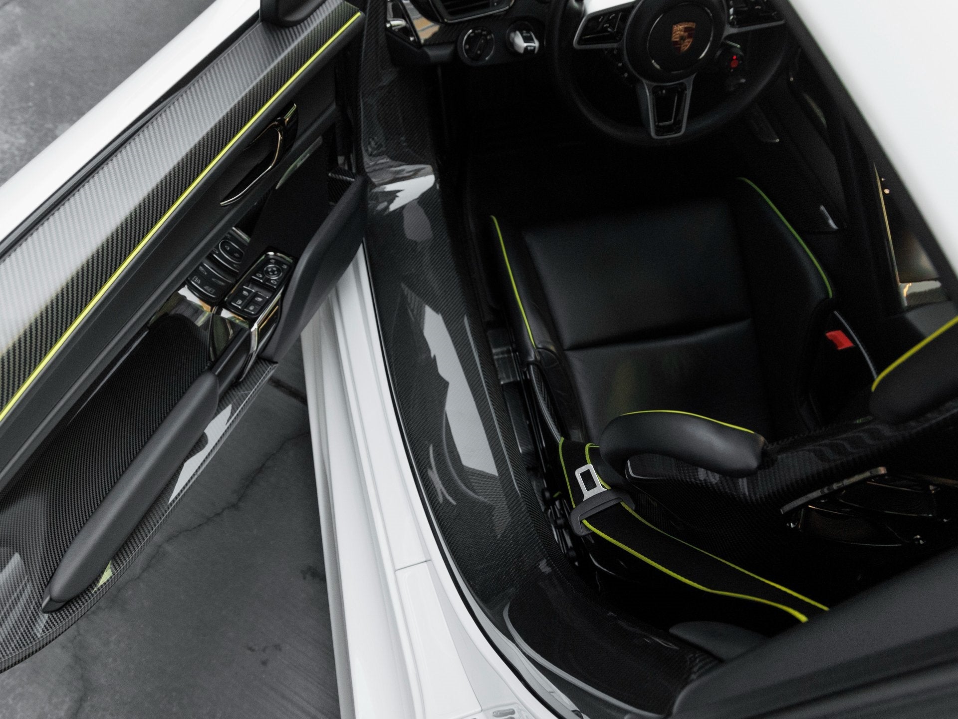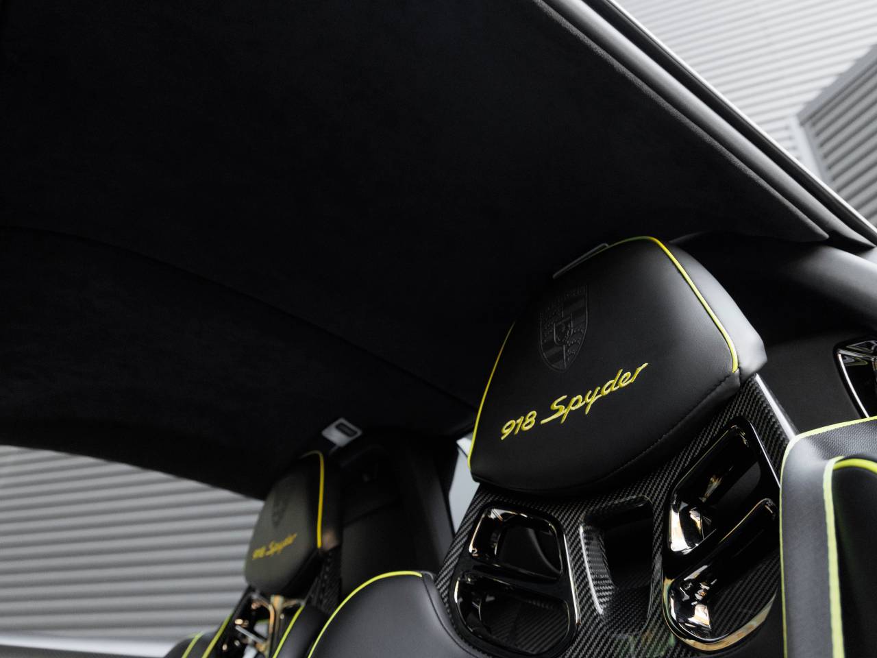 • Seat Belts with Accent Stripes in Acid Green: A distinctive detail that highlights the 918s hybrid identity.