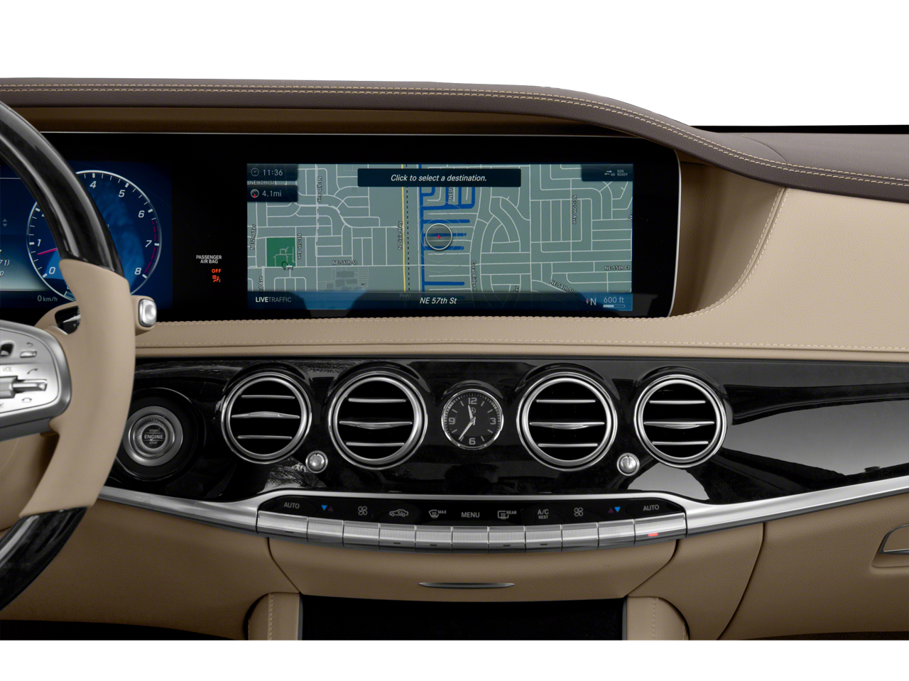 Step inside and the Stone Exclusive Leather interior welcomes you with meticulous craftsmanship and elevated comfort. The Exclusive Trim Package with High Gloss Burl Walnut Light Wood accents creates an atmosphere of refined elegance, complemented by a Porcelain DINAMICA Headliner. Active Multicontour Front Seats with Ventilation and Massage, Heated Front and Rear Seats, and Power Rear Seats with Memory ensure first-class comfort for every passenger. The immersive Burmester Surround Sound System, Head-Up Display, and expansive COMAND navigation system place advanced technology at your fingertips, while 64-Color Ambient Lighting and the Air Balance Package create a personalized sensory experience.